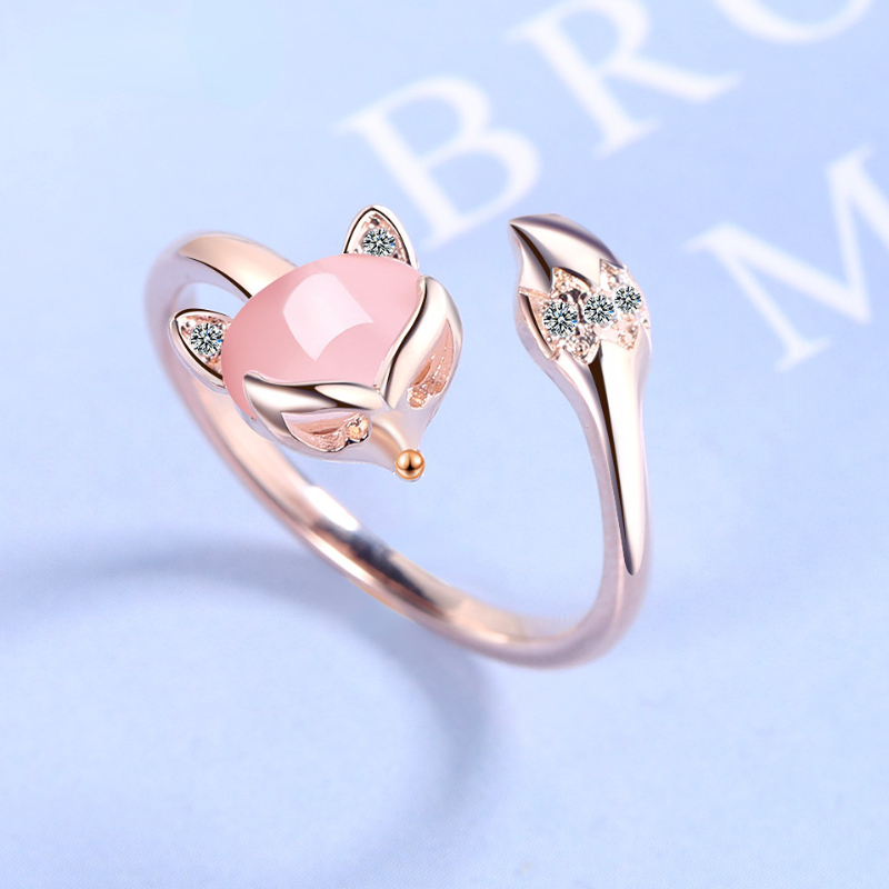 Rose Gold Fox Ring: High Quality Crystal Zircon & Agate, 925 Sterling Silver | Adjustable Jewelry For Women | Ideal Gift silver