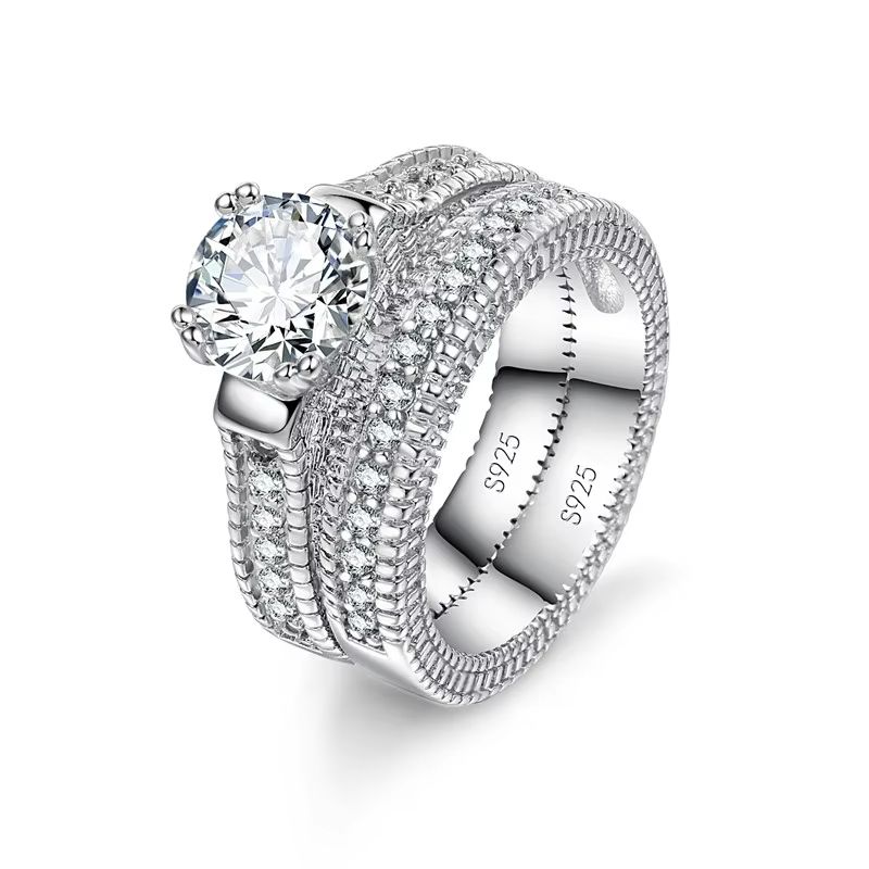 Elegant 925 Silver Wedding Engagement Couple Rings Set 10