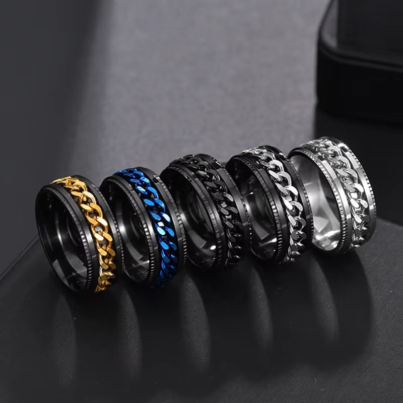 Stainless Steel Chain Spinner Ring For Men And Women Punk Style Fidget Jewelry 11 r09 00