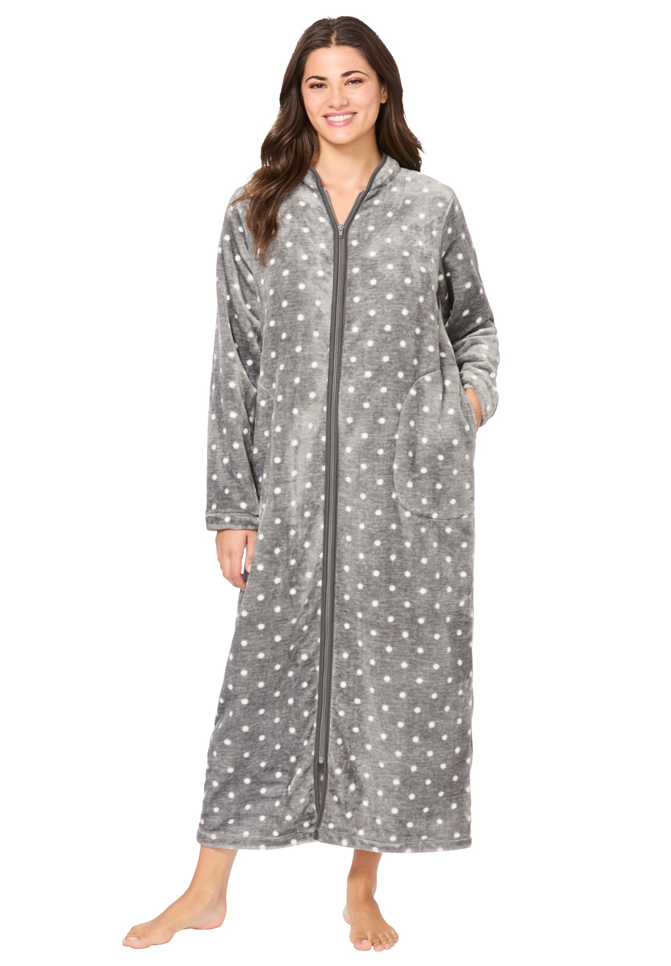 Plus Size Women's Plush Zip-Front Robe by Dreams & Co. in Medium Heather Grey Dot (Size 14/16)