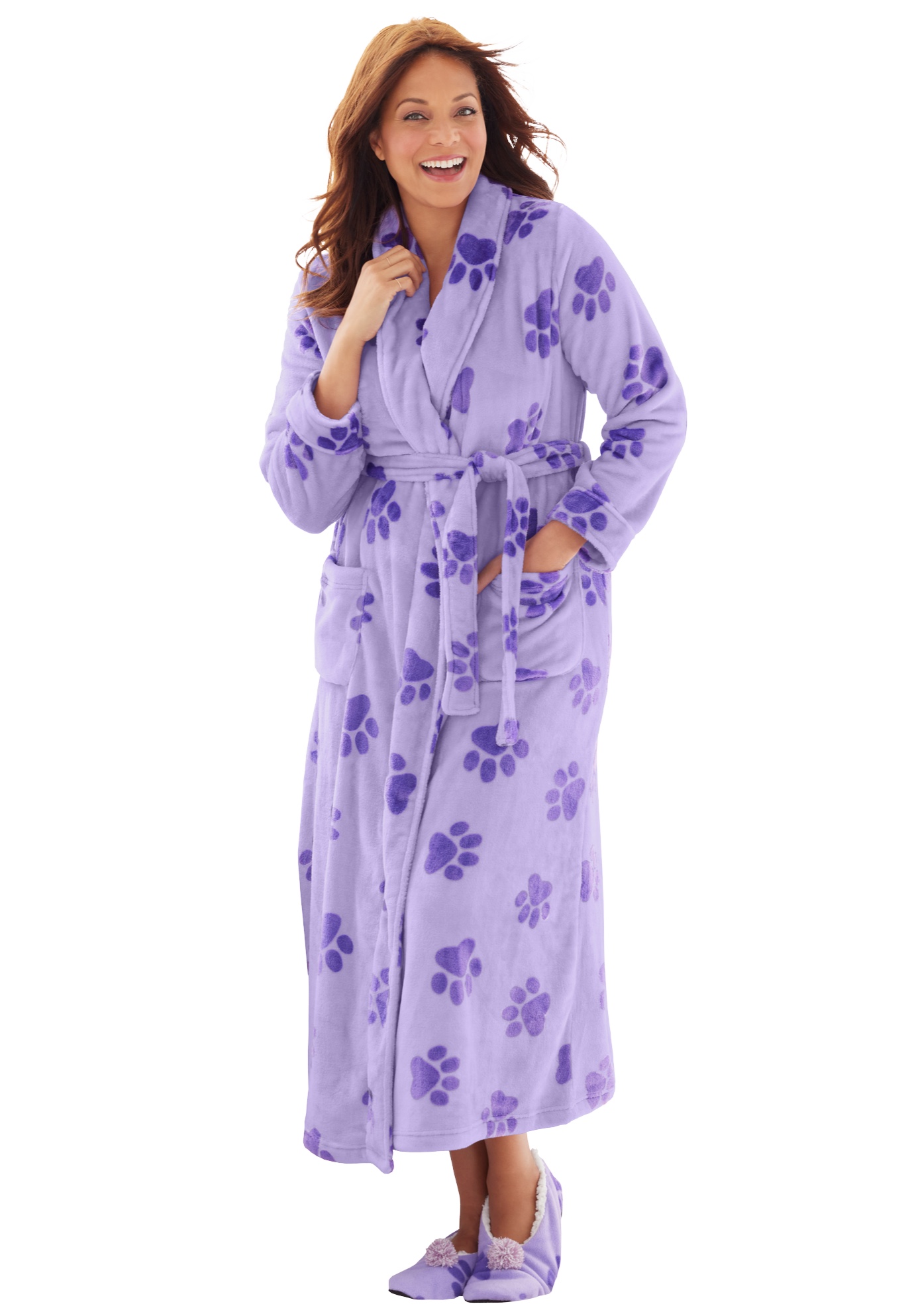 Plus Size Women's Plush Wrap Robe by Dreams & Co. in Soft Iris Paws (Size 22/24)
