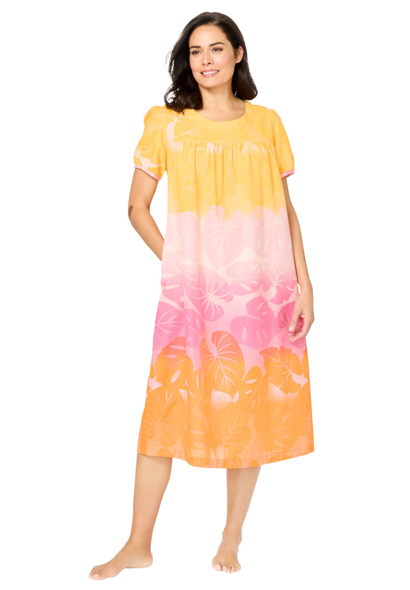 Plus Size Women's Short Print Shirred Lounger by Only Necessities in Multi Tropical Ombre (Size 5X)