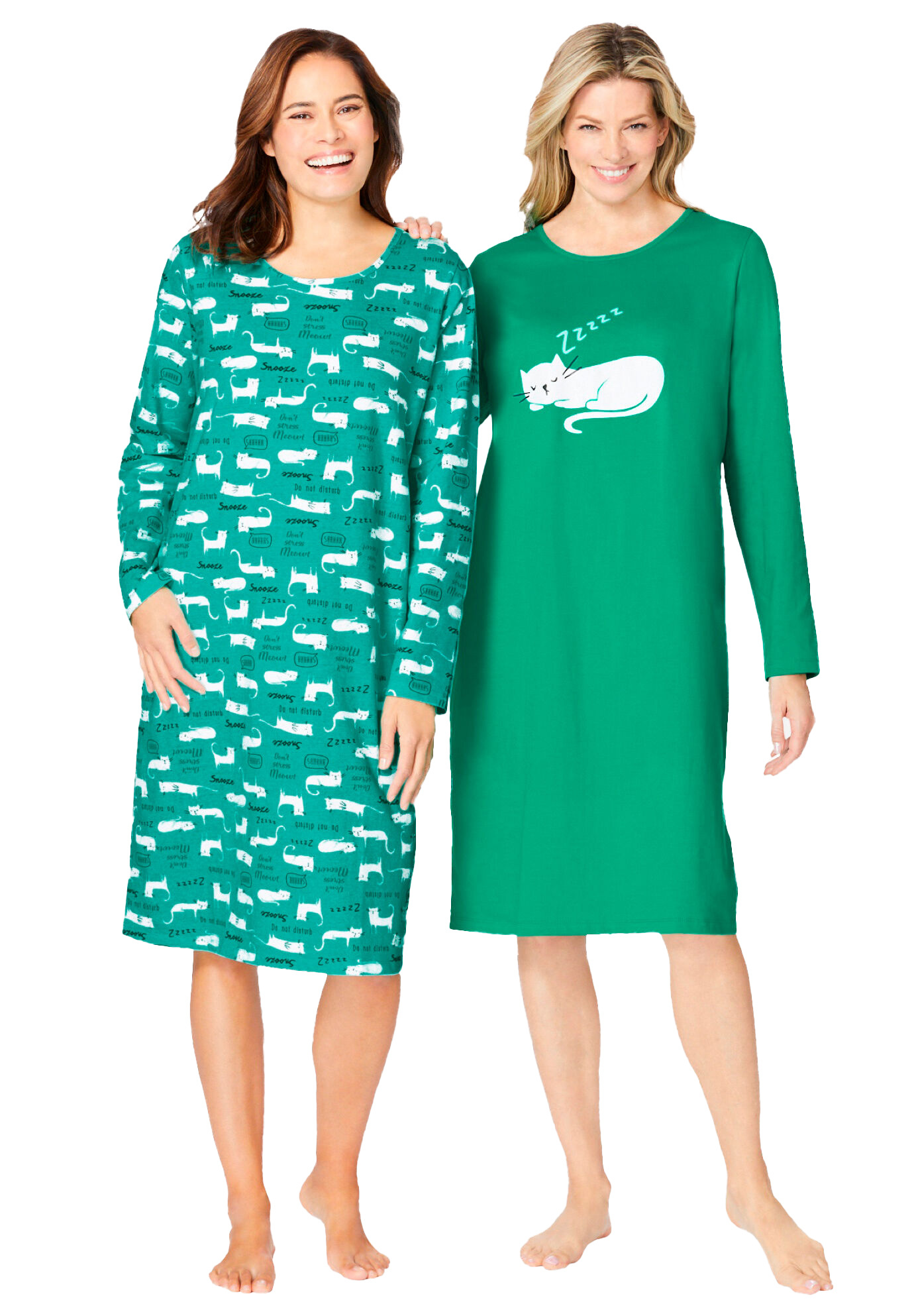 Plus Size Women's 2-Pack Long-Sleeve Sleepshirt by Dreams & Co. in Tropical Emerald Cat (Size 1X/2X) Nightgown