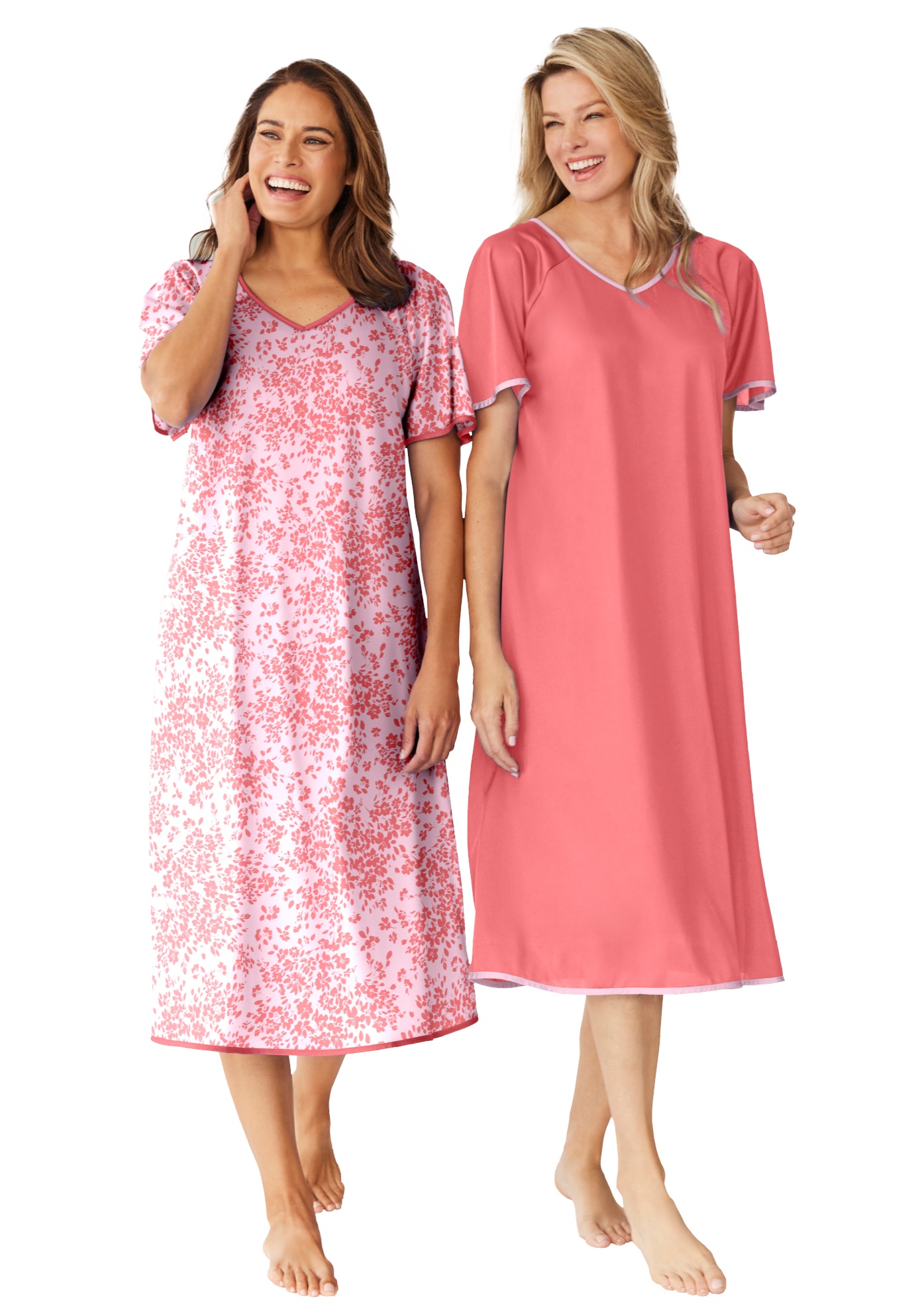 Plus Size Women's 2-Pack Short Silky Gown by Only Necessities in Sweet Coral Flower (Size L) Pajamas