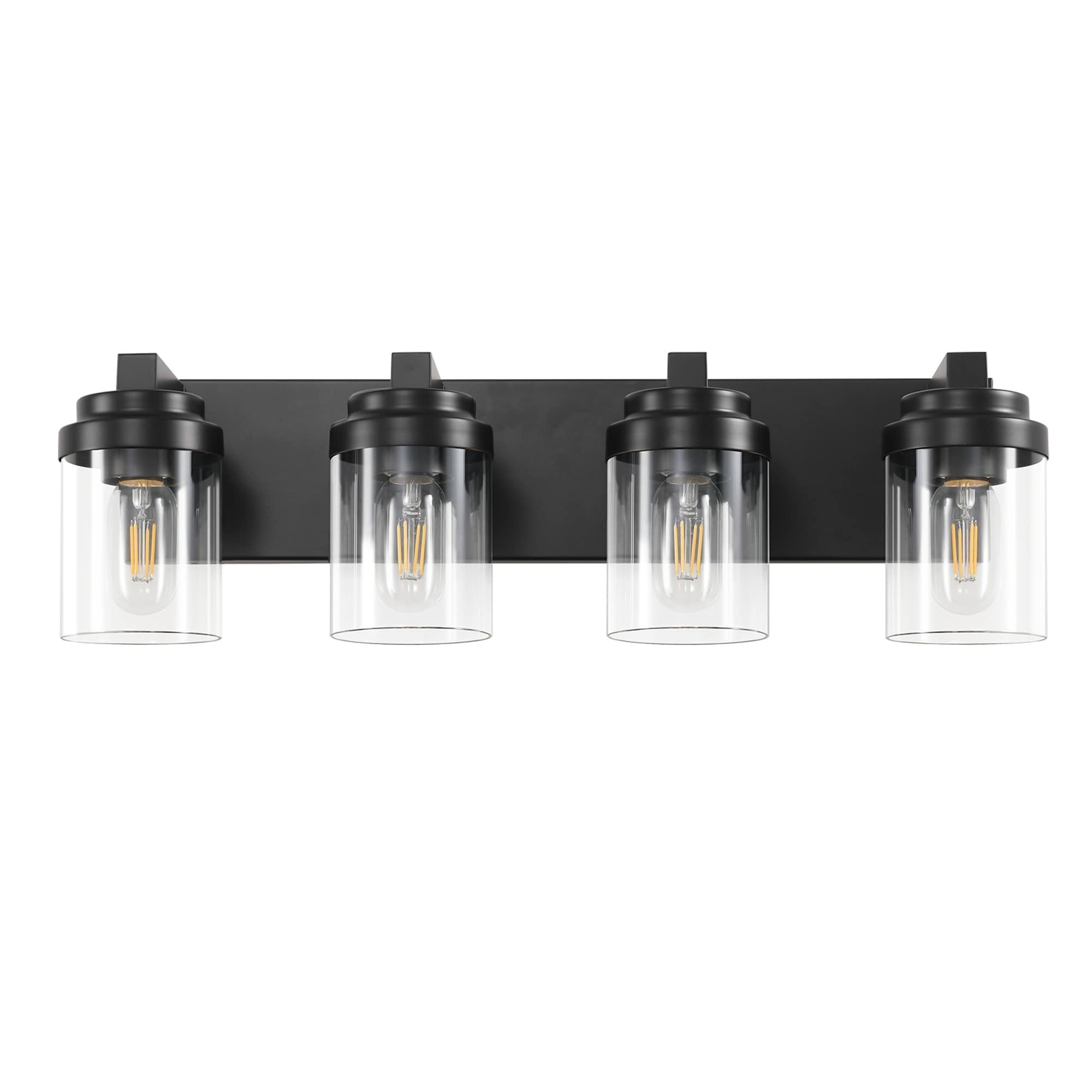 24.1 in. 4-Light Matte Black Wall Sconce with Clear Glass Shade