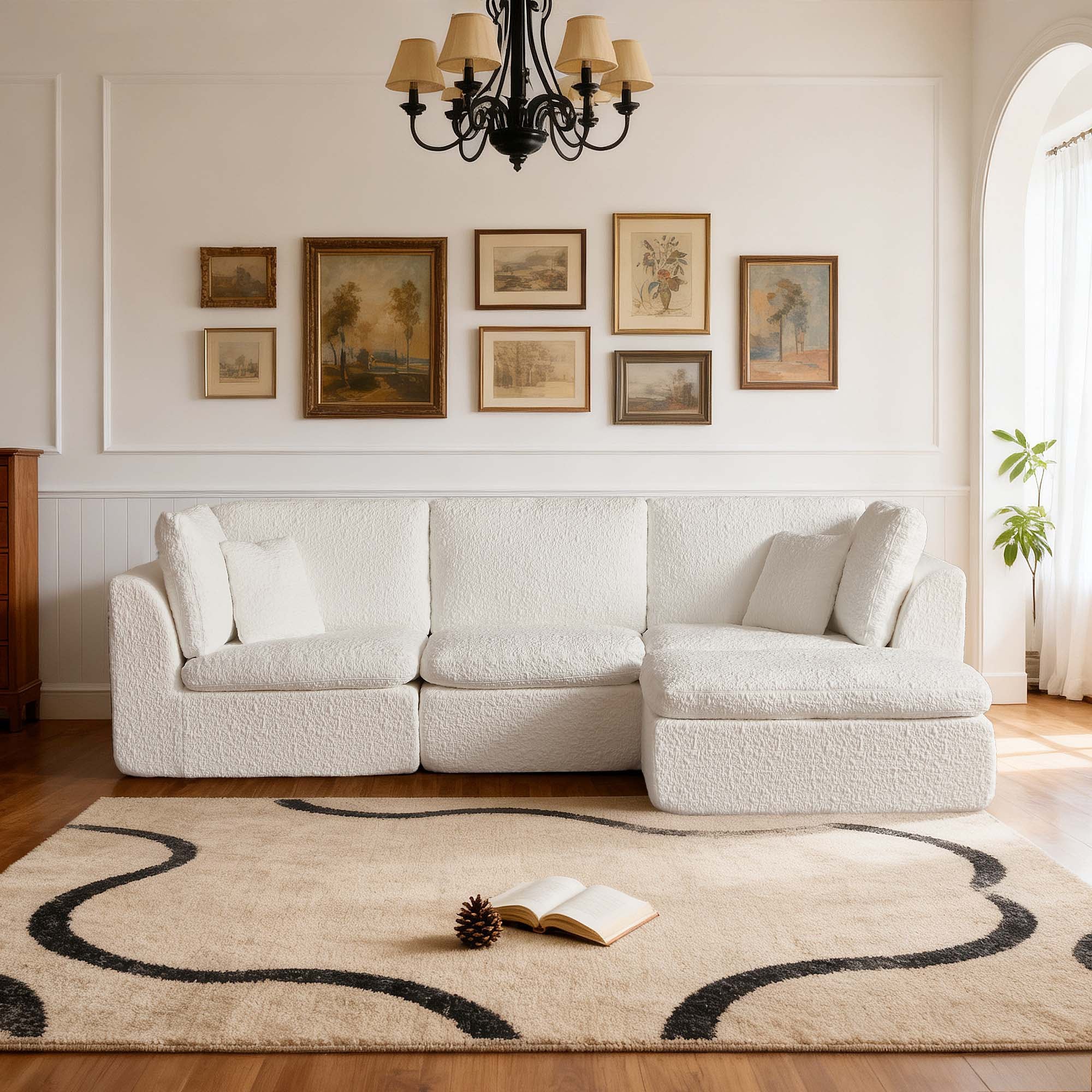118.1" Modular Sectional Sofa Cloud Couch, Oversized L Shaped 4 Seat Velvet Sofa with Ottoman & Pillows, for Apartment