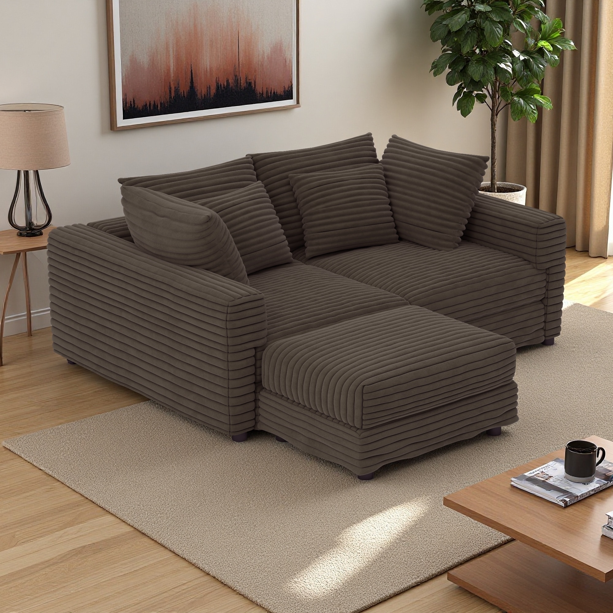 102.4" Plush Corduroy 4-Seater Cloud Sofa with Movable Ottoman and Convertible Design