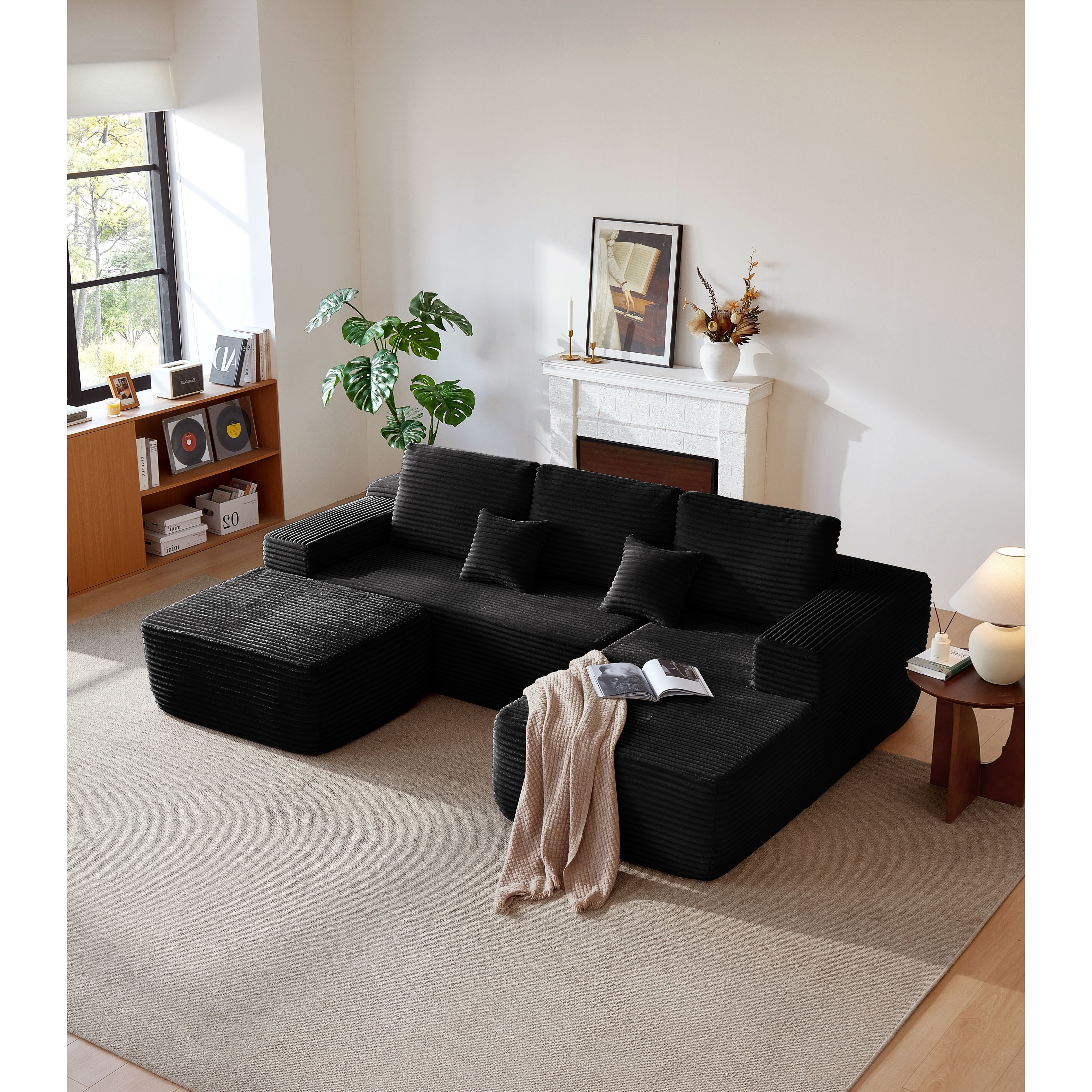 U Shaped Deep Seat Cloud Couch Oversized Corduroy Upholstered Modular Sectional Sofa Couch with 2 Movable Ottomans