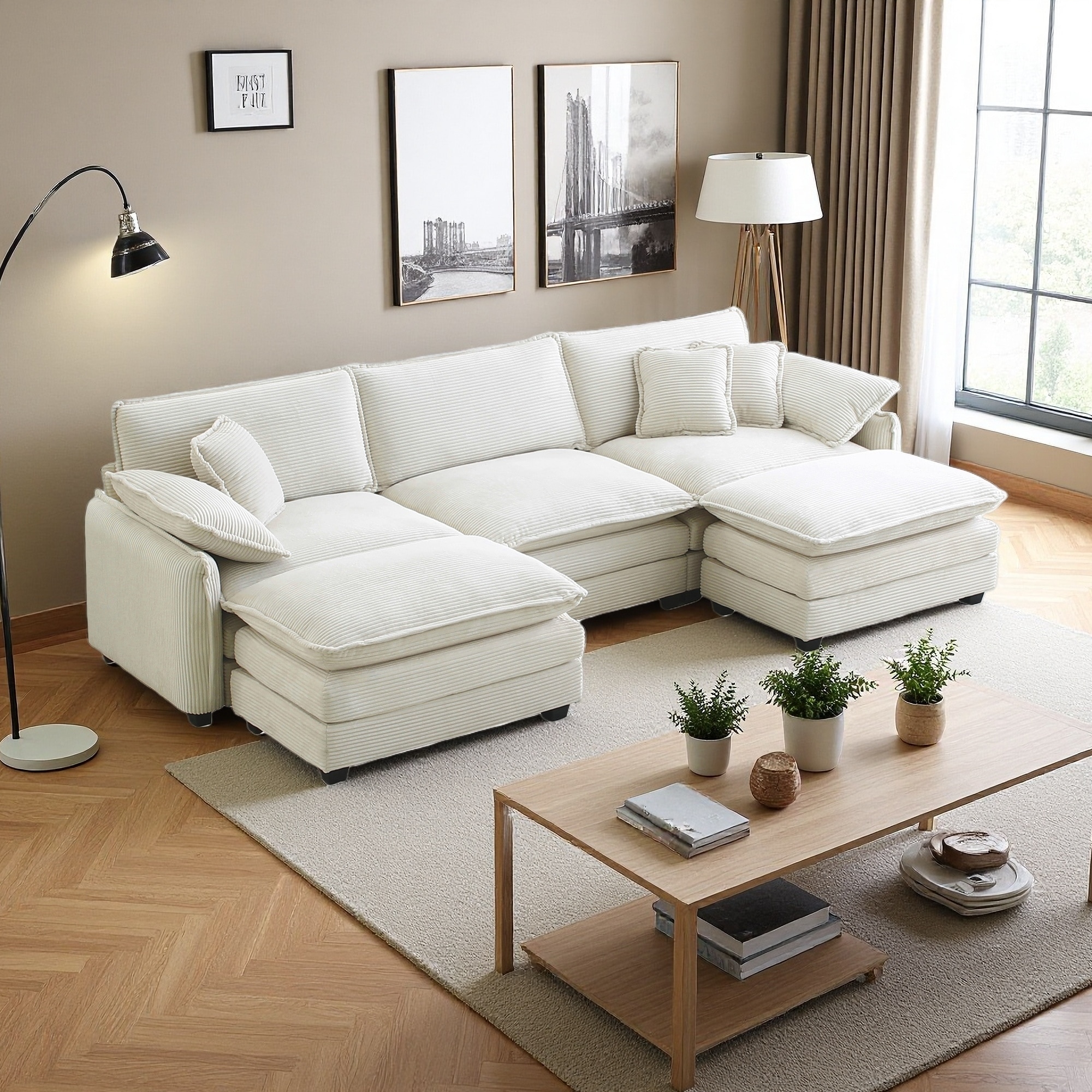 115.34" Corduroy Oversized U-Shaped Modular Sectional Sofa with 2 Convertible Ottomans (3-Seater)