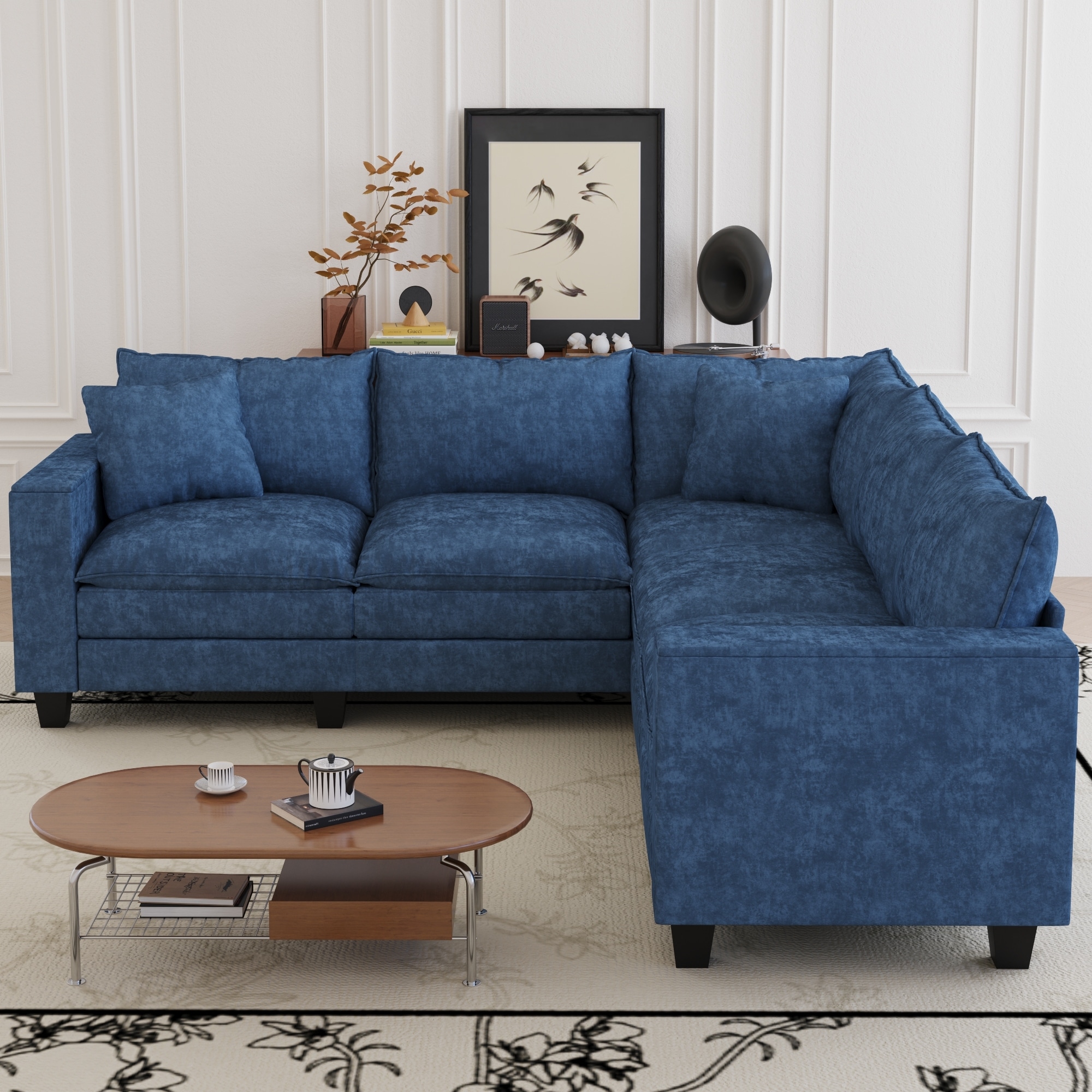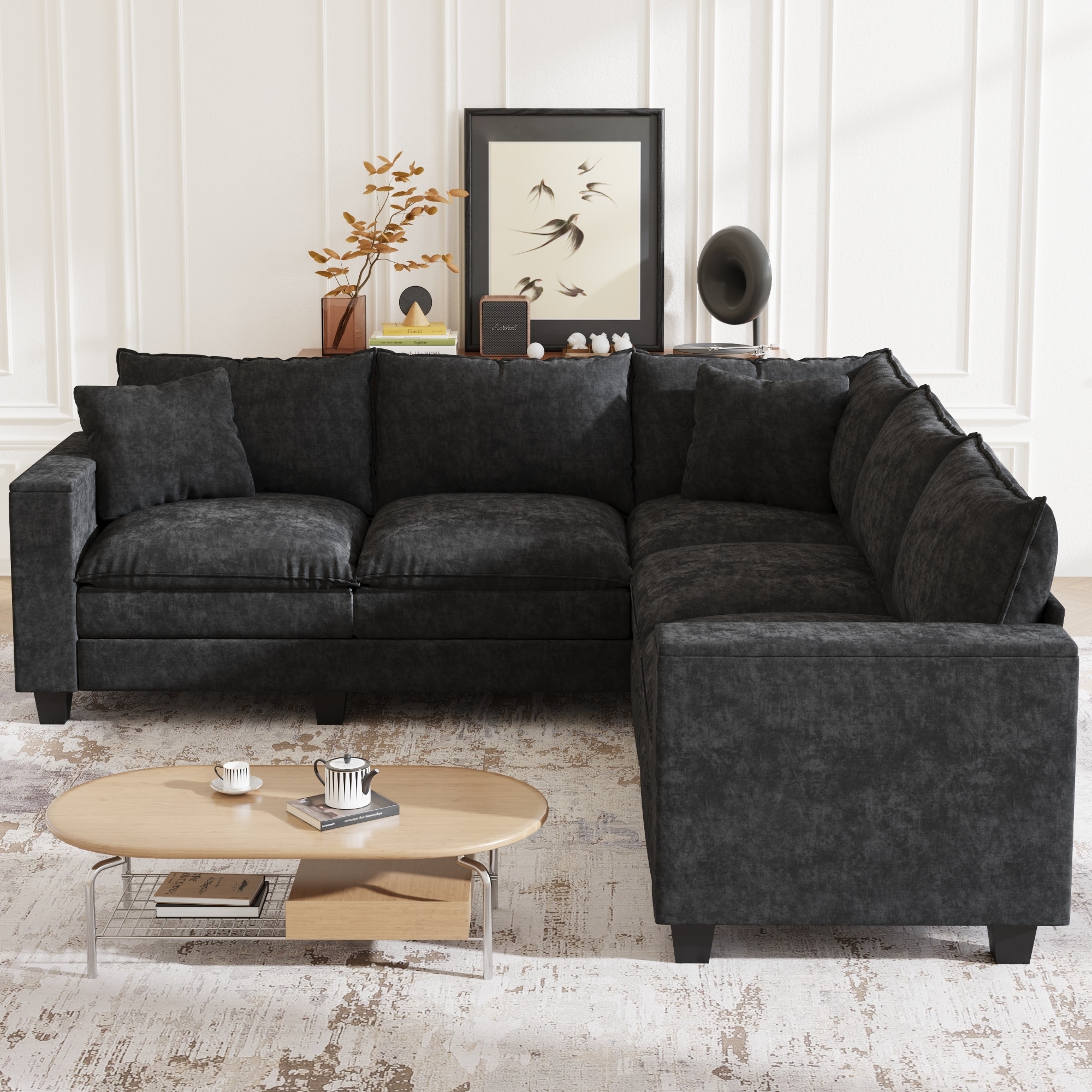 Modular 6 Seat Sectional Sofa with Movable Ottoman Customizable Design Chenille for Living Room Apartment