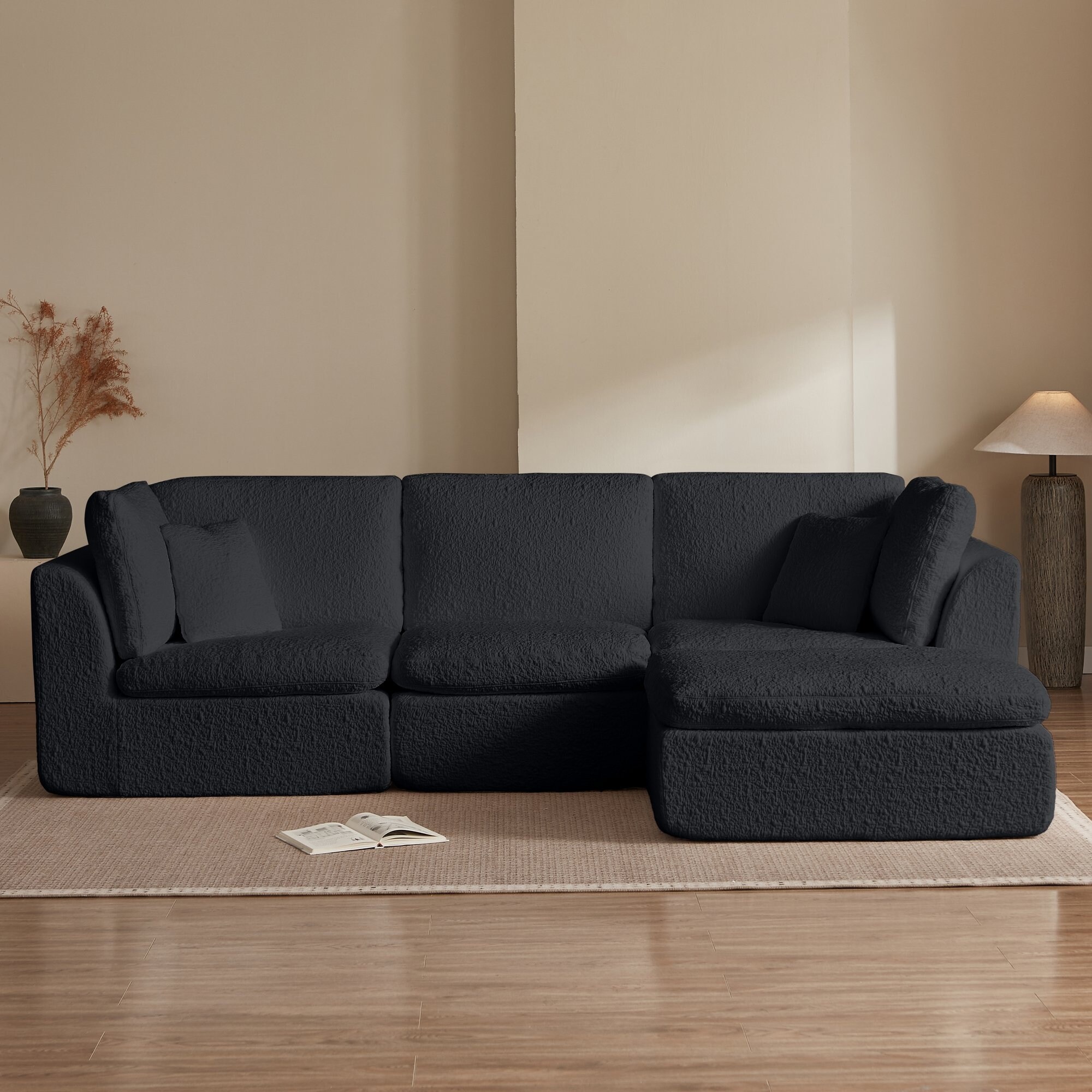 4-Seat Modular Sofa,Oversize Deep Seat Sectional Couch with 2 Ottomans