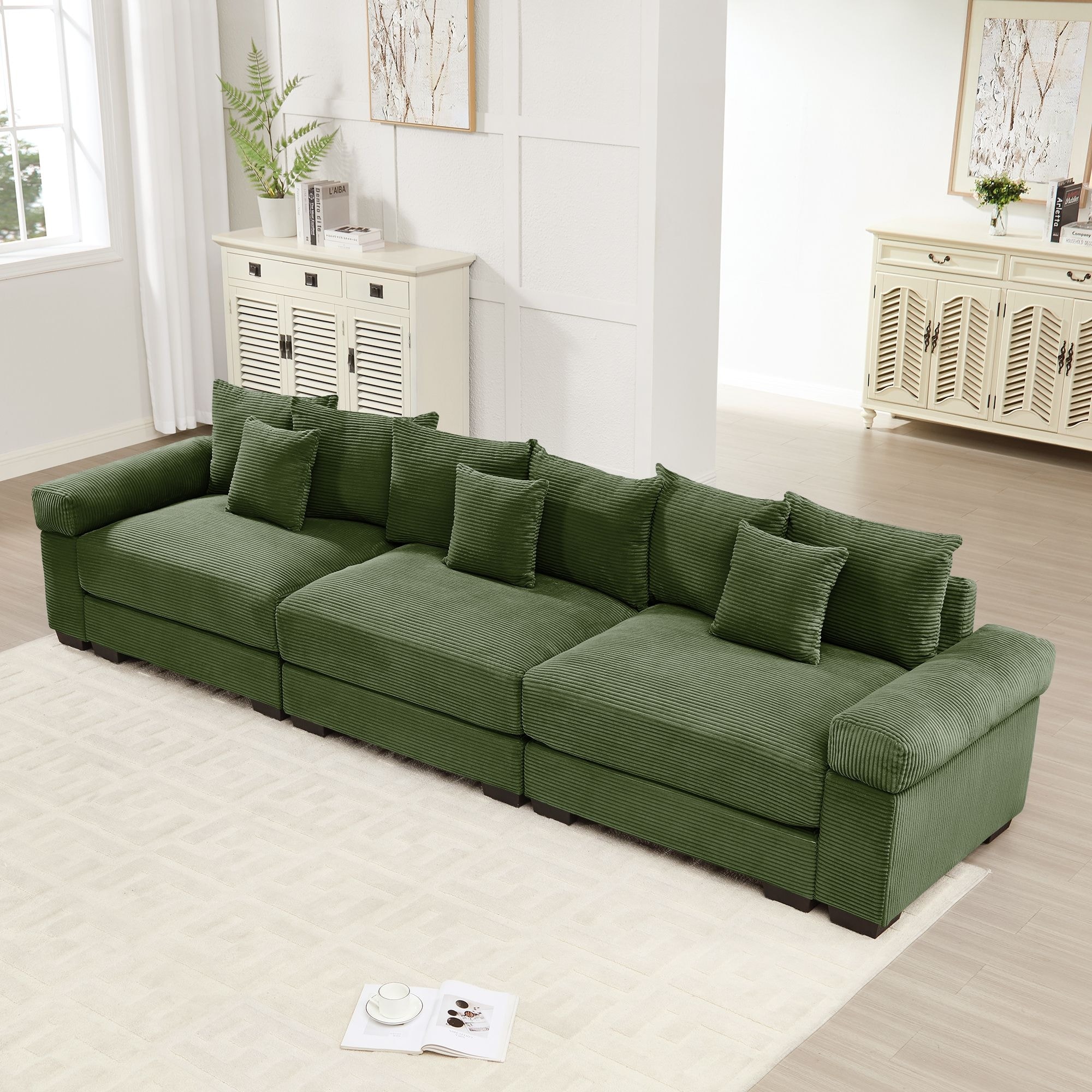 Rossetta 3-Seater Modern 130" Premium Corduroy Modular Deep Seating Sectional Couch, Easy Assembly