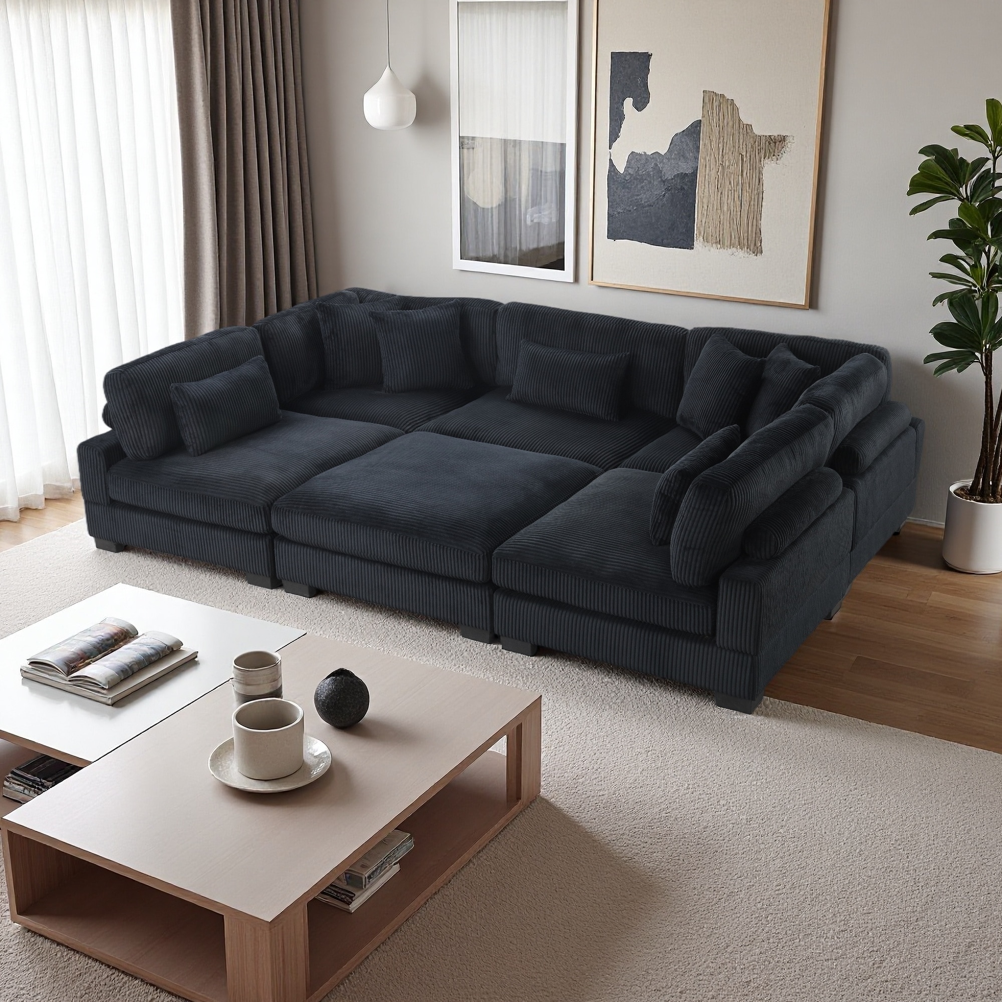 111" Corduroy Magic Cube Sectional Sofa, 4-Seater, No Assembly