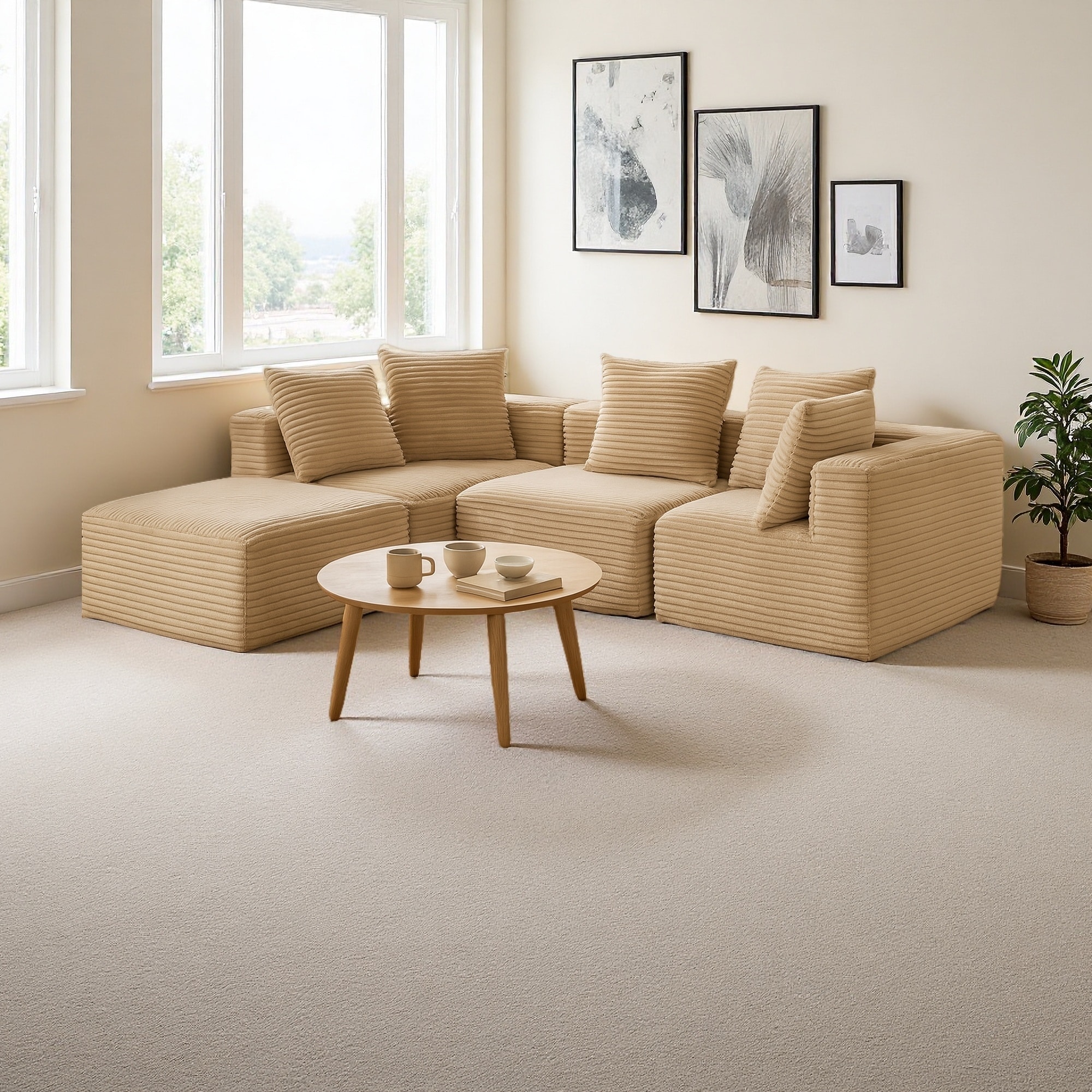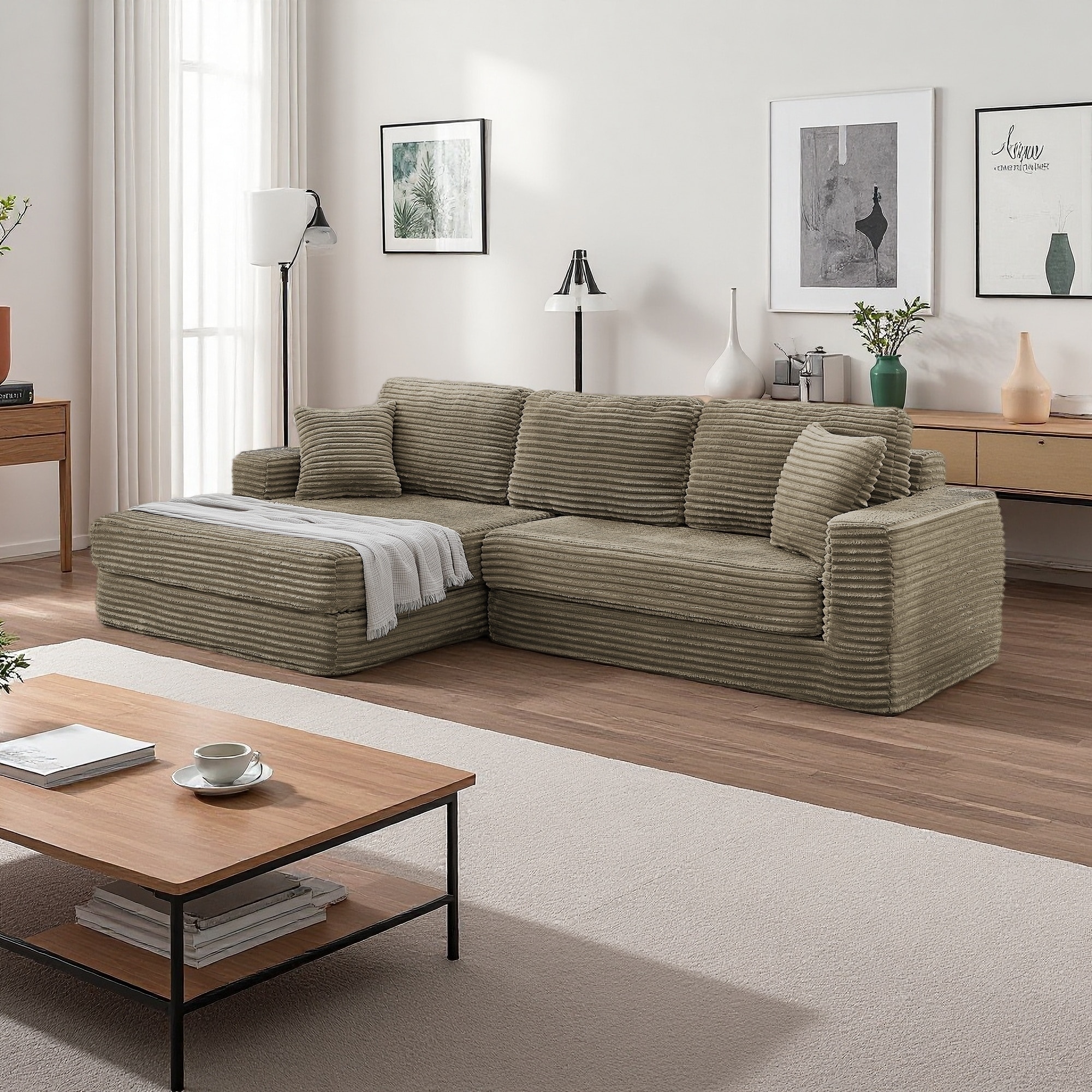 Corduroy Upholstered Modular L-shaped Chaise Sectional Sofa