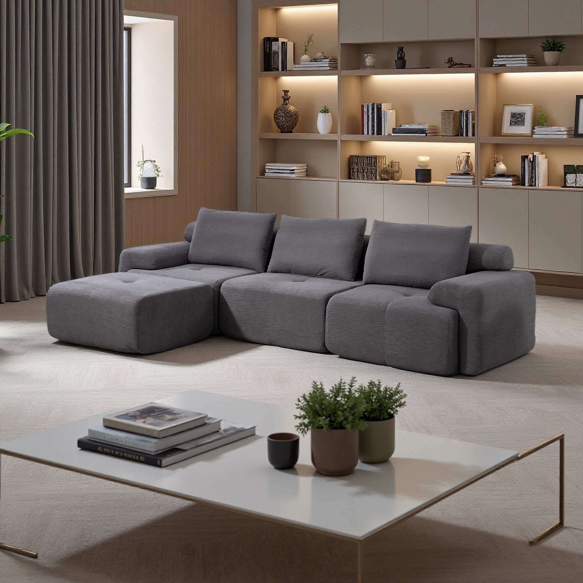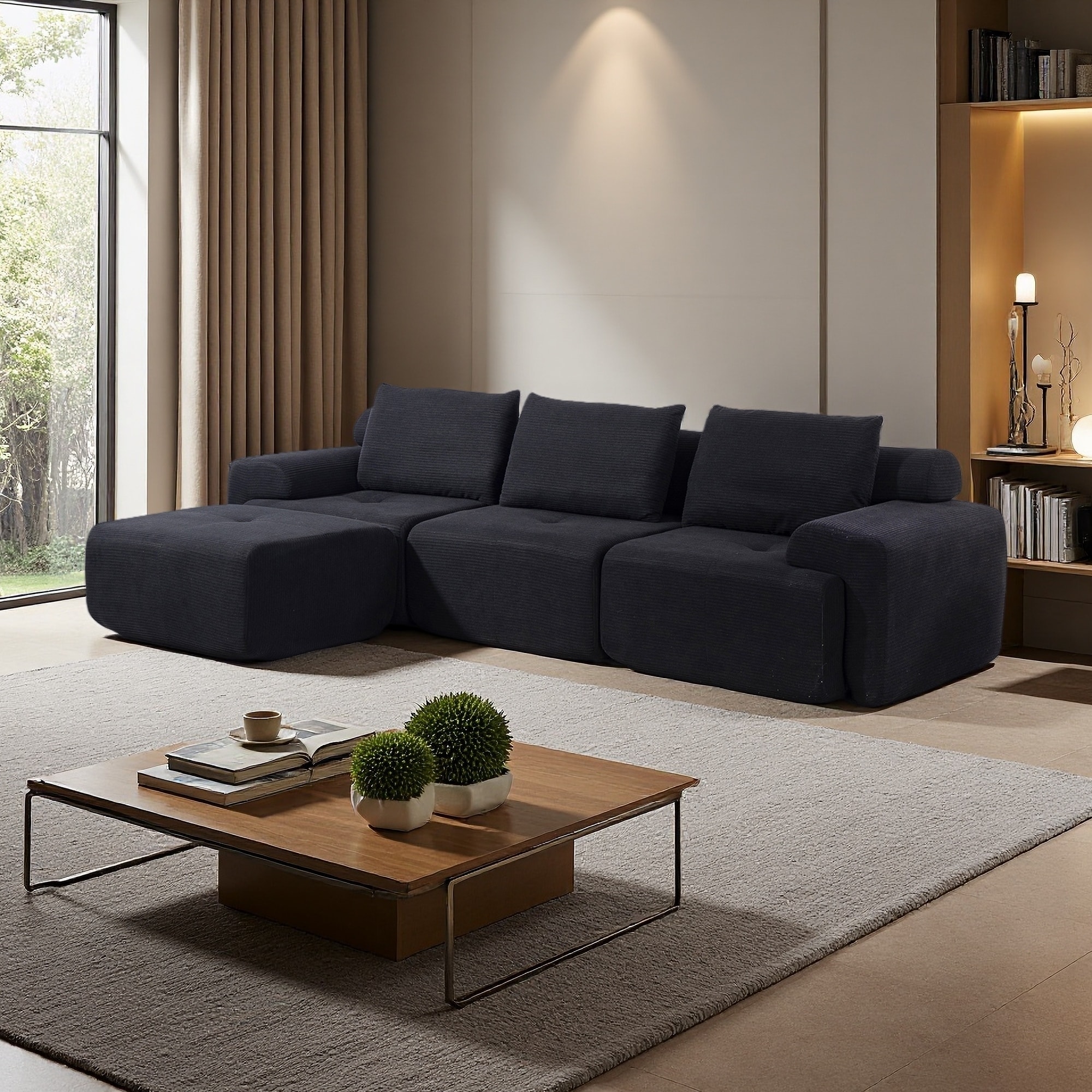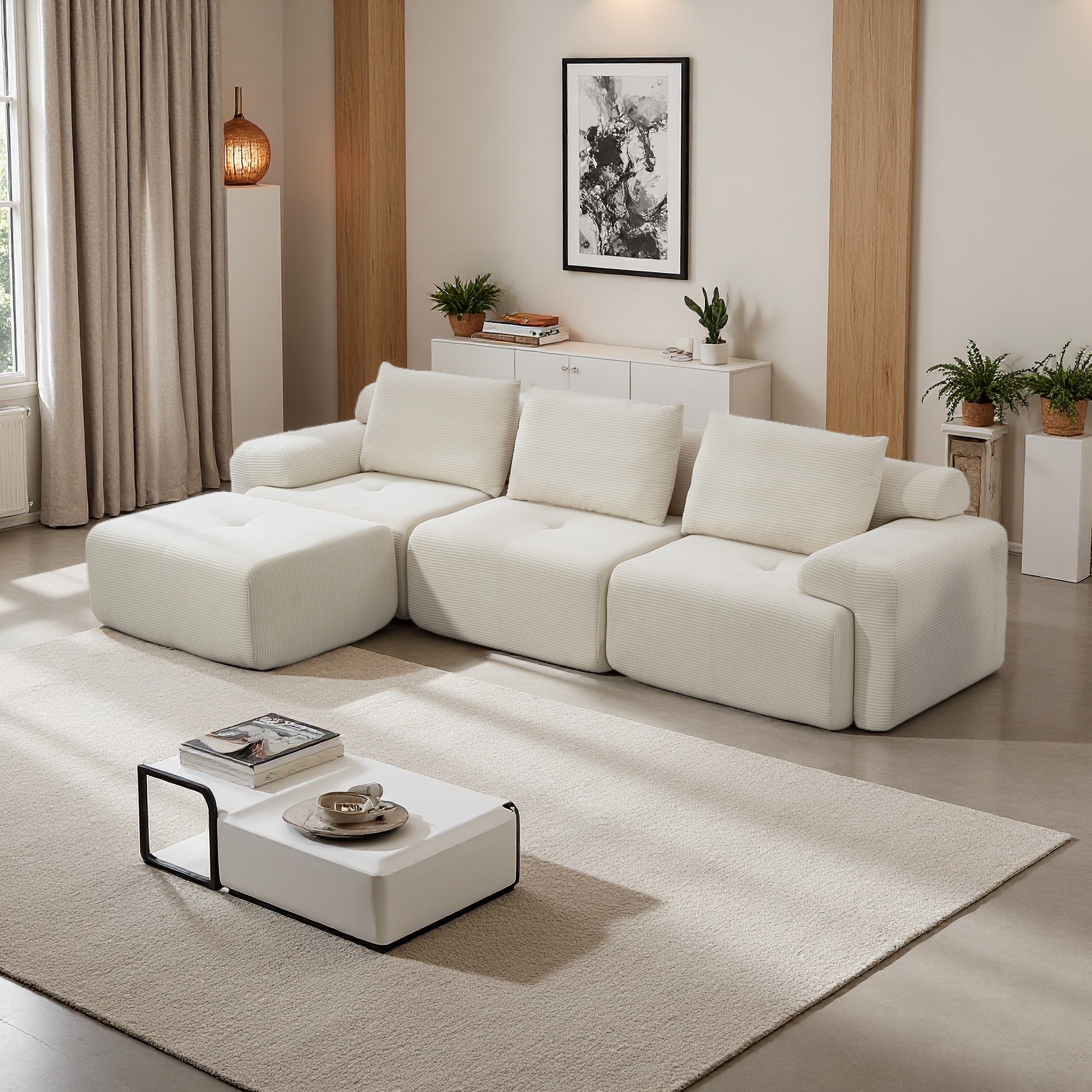 3-seater Cloud Sofa Corduroy Upholstered Sectional Couch with Ottoman
