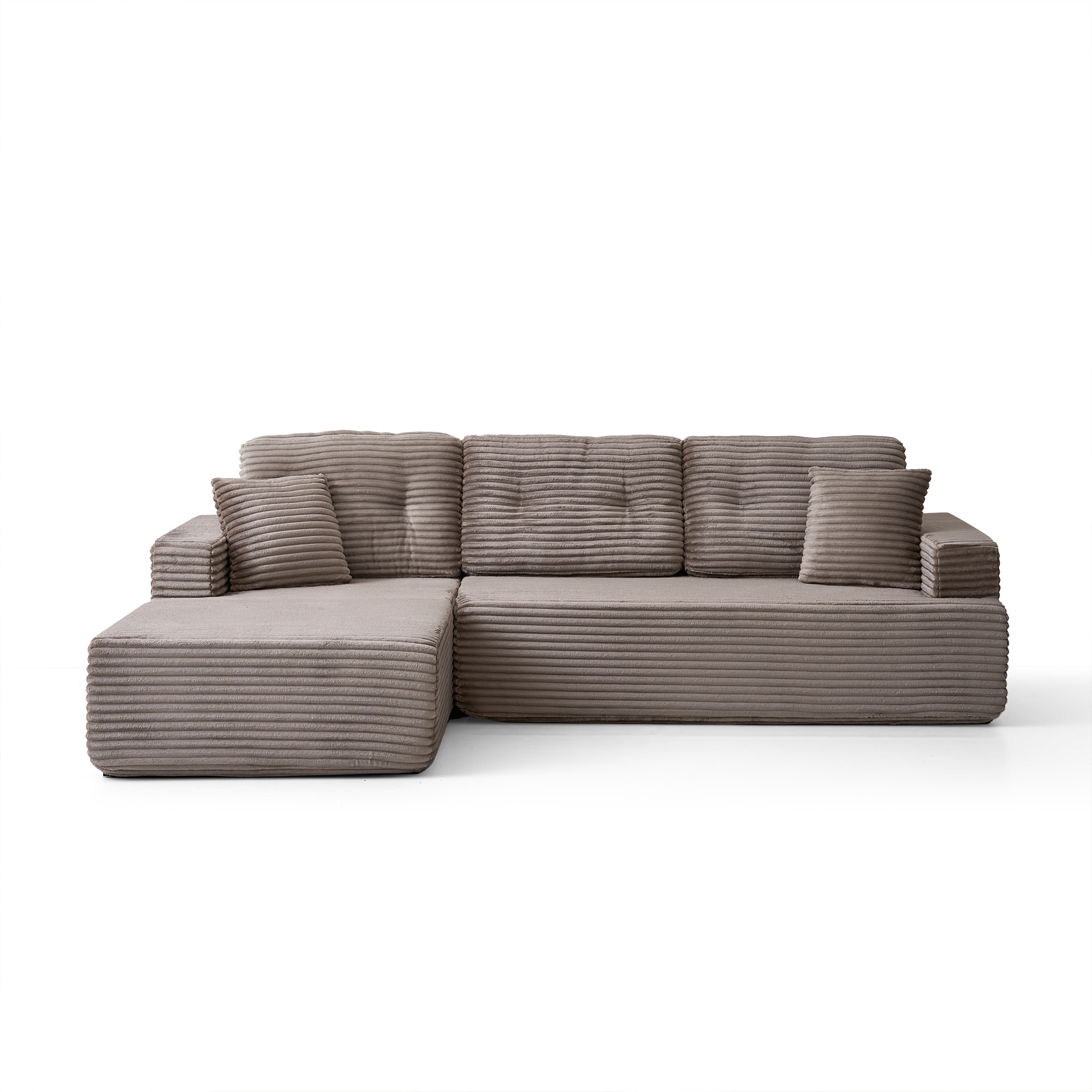 120.08" Corduroy L-Shaped Convertible Sectional Sofa Bed with Memory Foam and No Assembly Required (3-Seater)