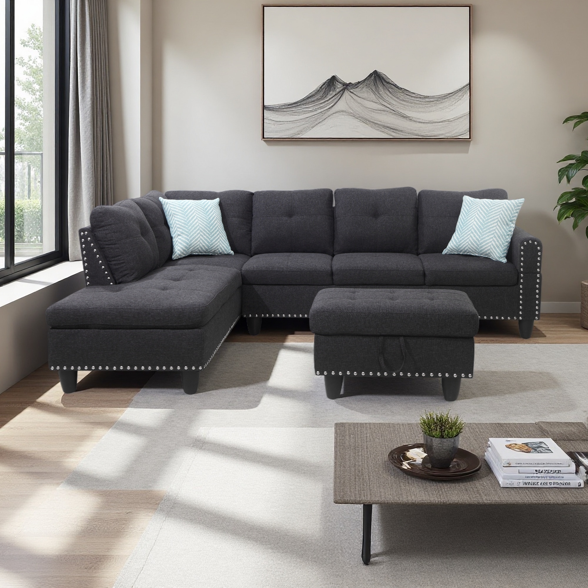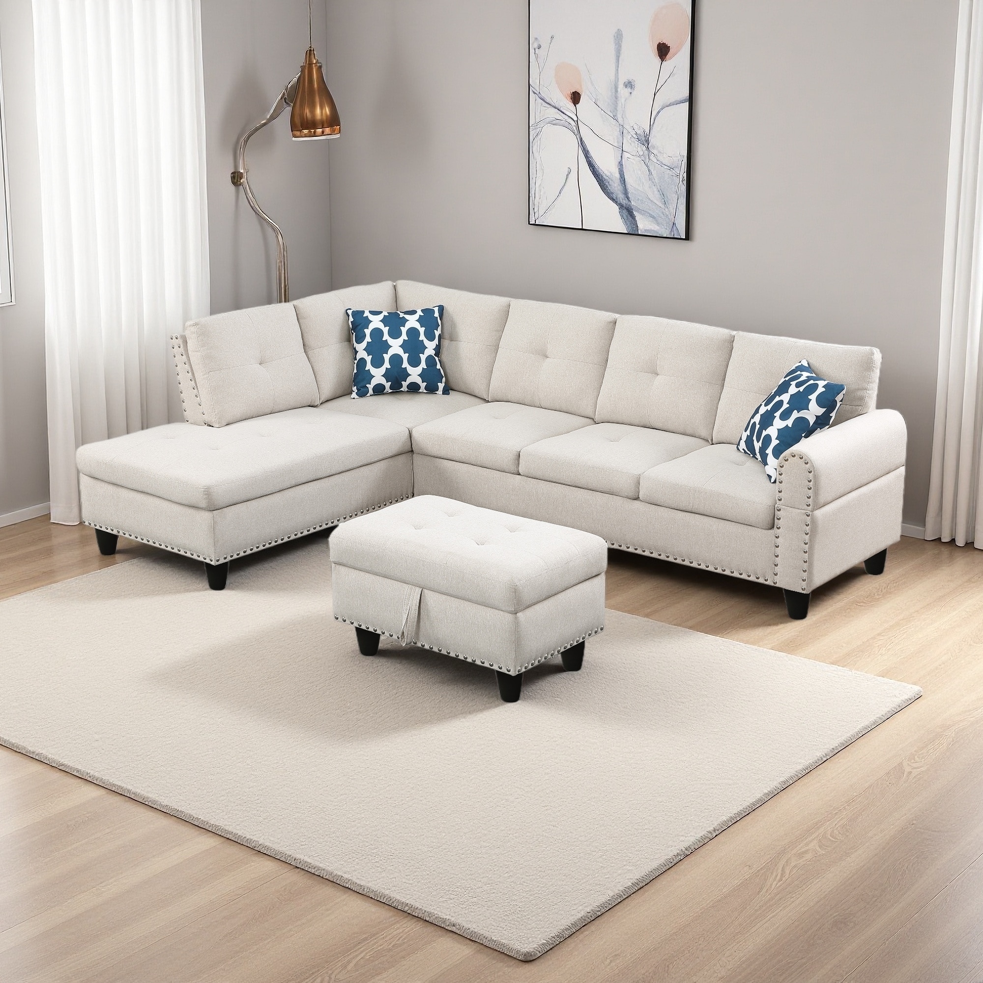 Modern Chenille Sectional Sofa Couch with Hidden Storage & 2 Ottoman