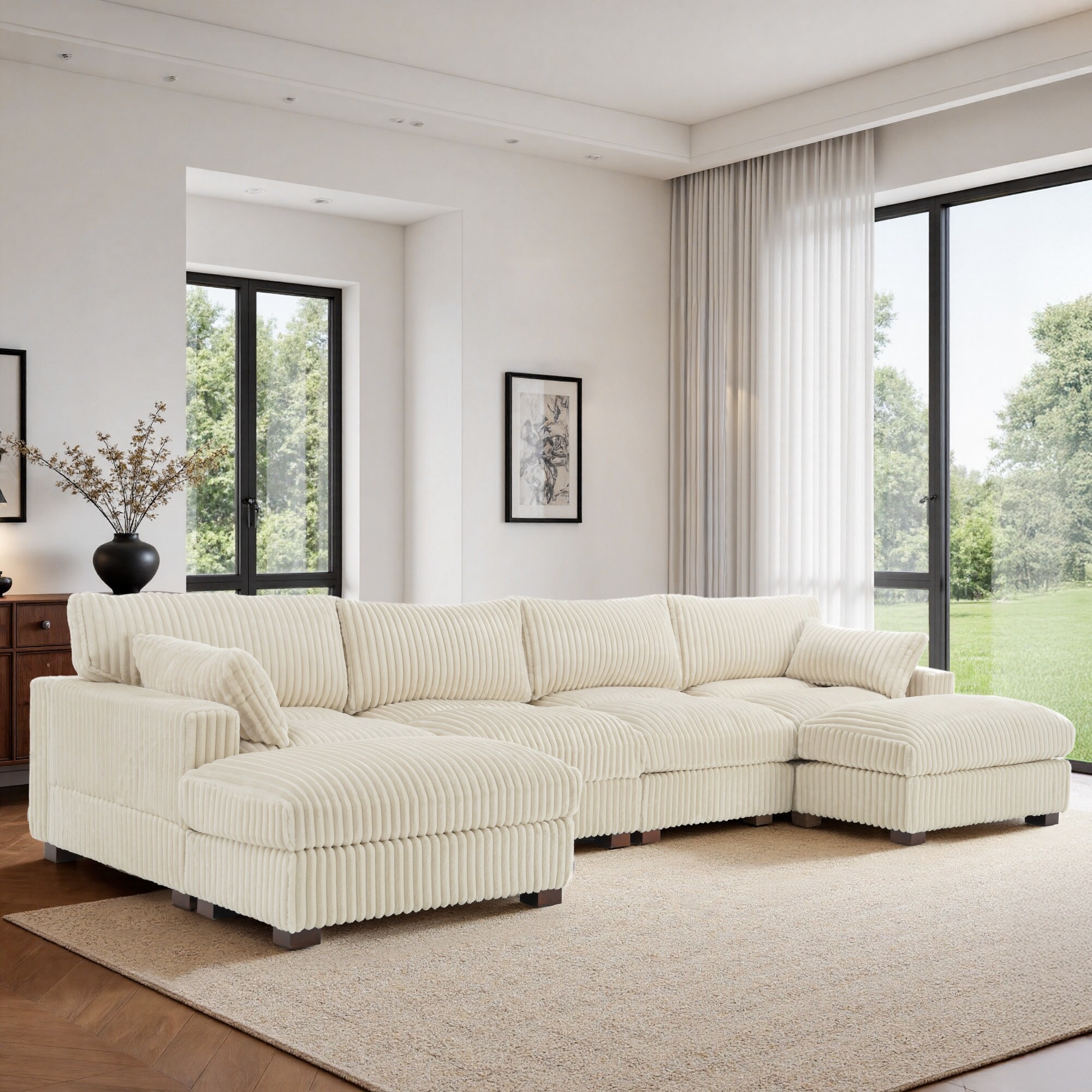 117.3" Corduroy L-Shaped Modular Sofa with No Assembly Required, Ergonomic Design and Extra-Wide Curved Armrests