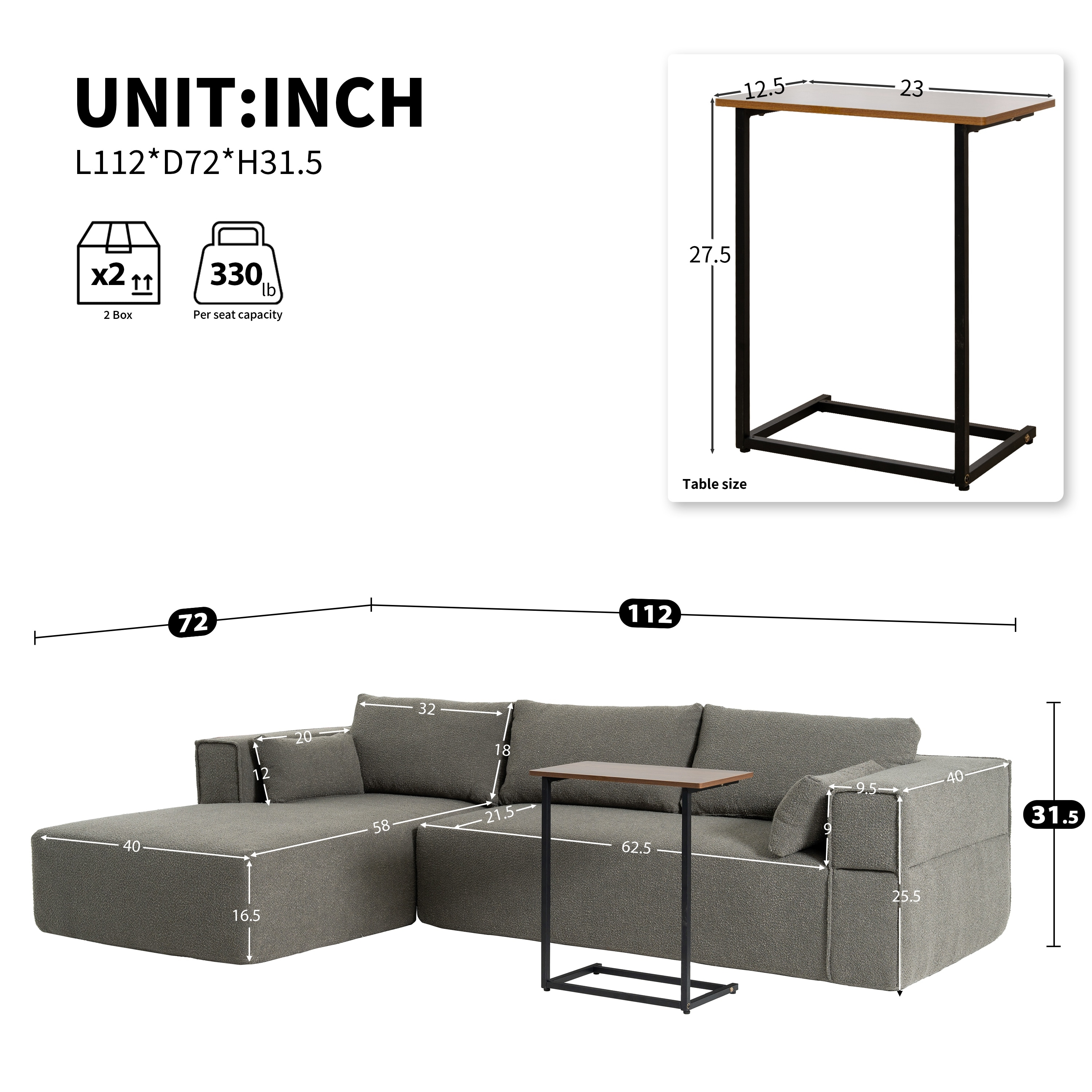 Modular Sectional Sofa With Free Side Table Wide Seat Fully Compressed Wrinkle-Resistant Boucle Fabric