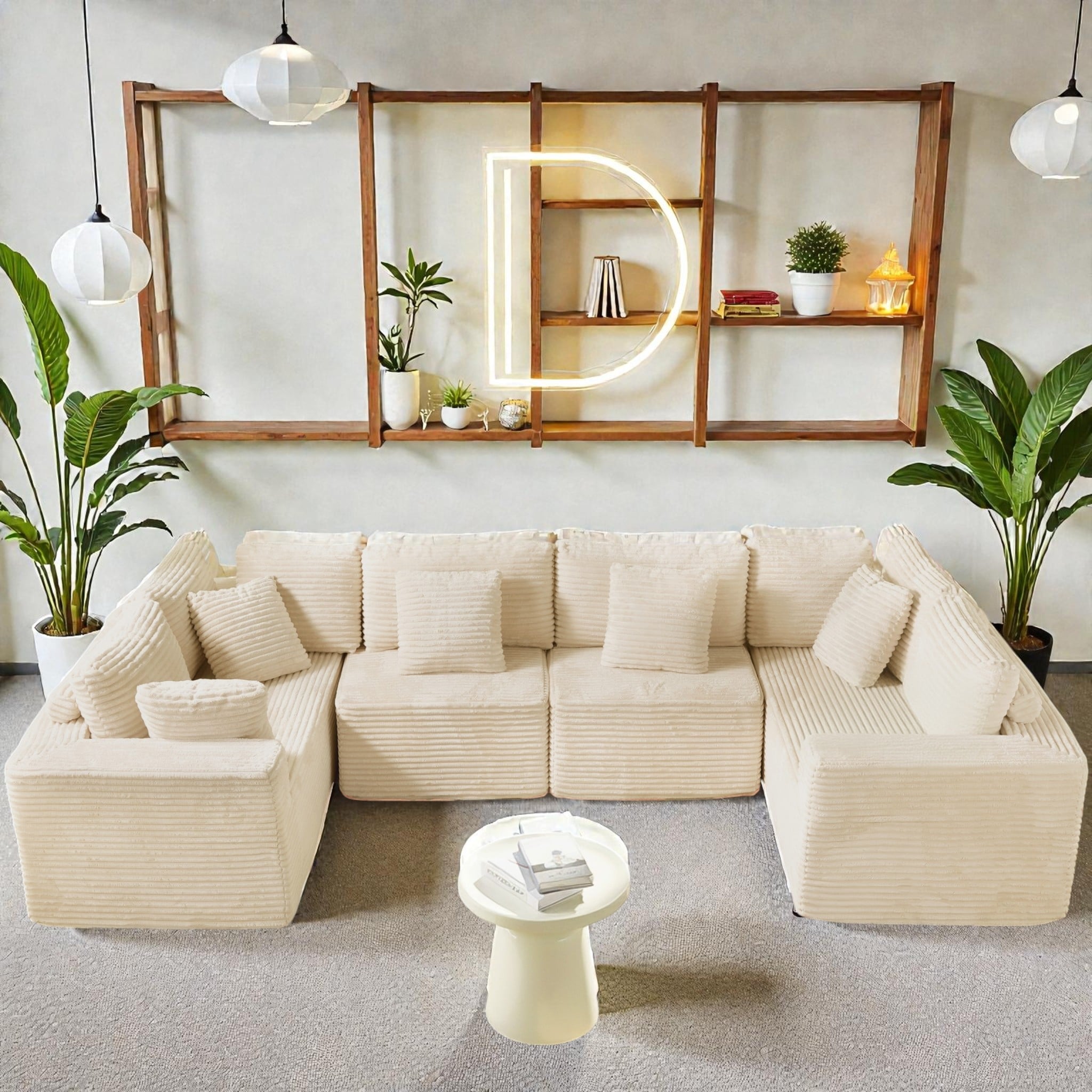 135.5 Inch U Shaped Modular Sectional Sofa, 6 Seat Corduroy Chaise Couch with Reversible Layout