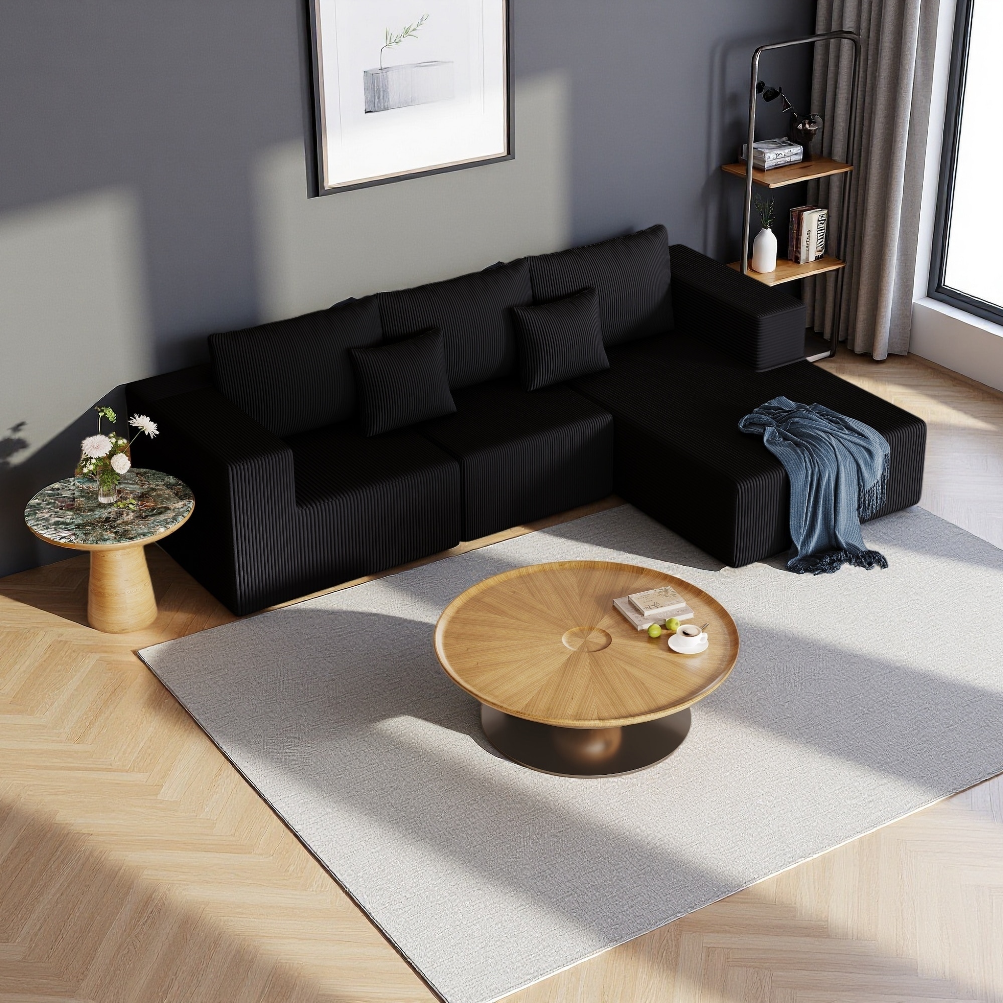 Modular Corduroy Sectional Sofa Set Chaise Couch with Ottoman