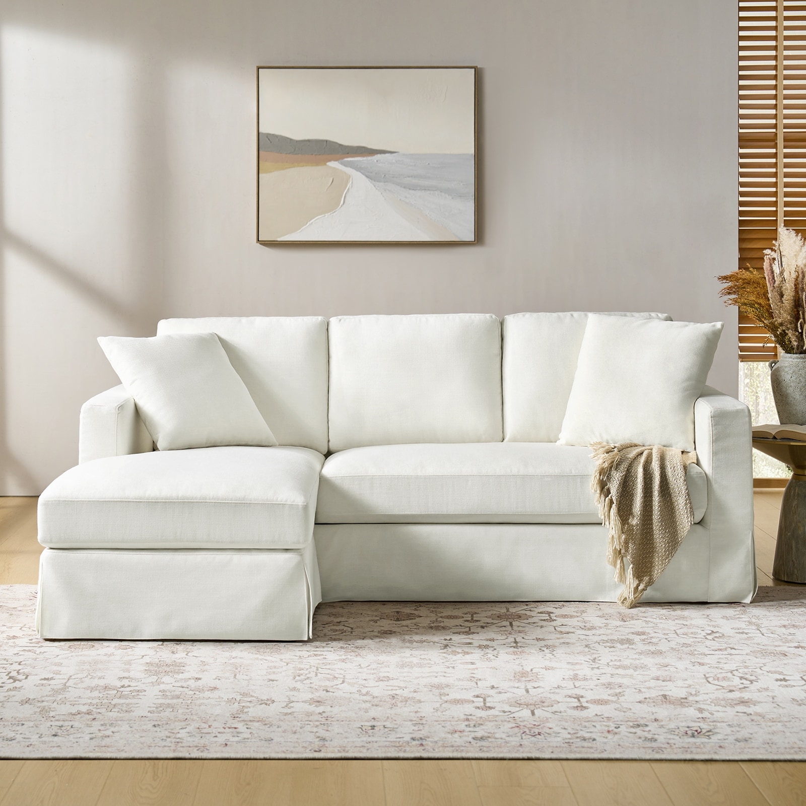 Victor 85" Slipcovered Sofa with Interchangeable Chaise Lounge by HULALA HOME