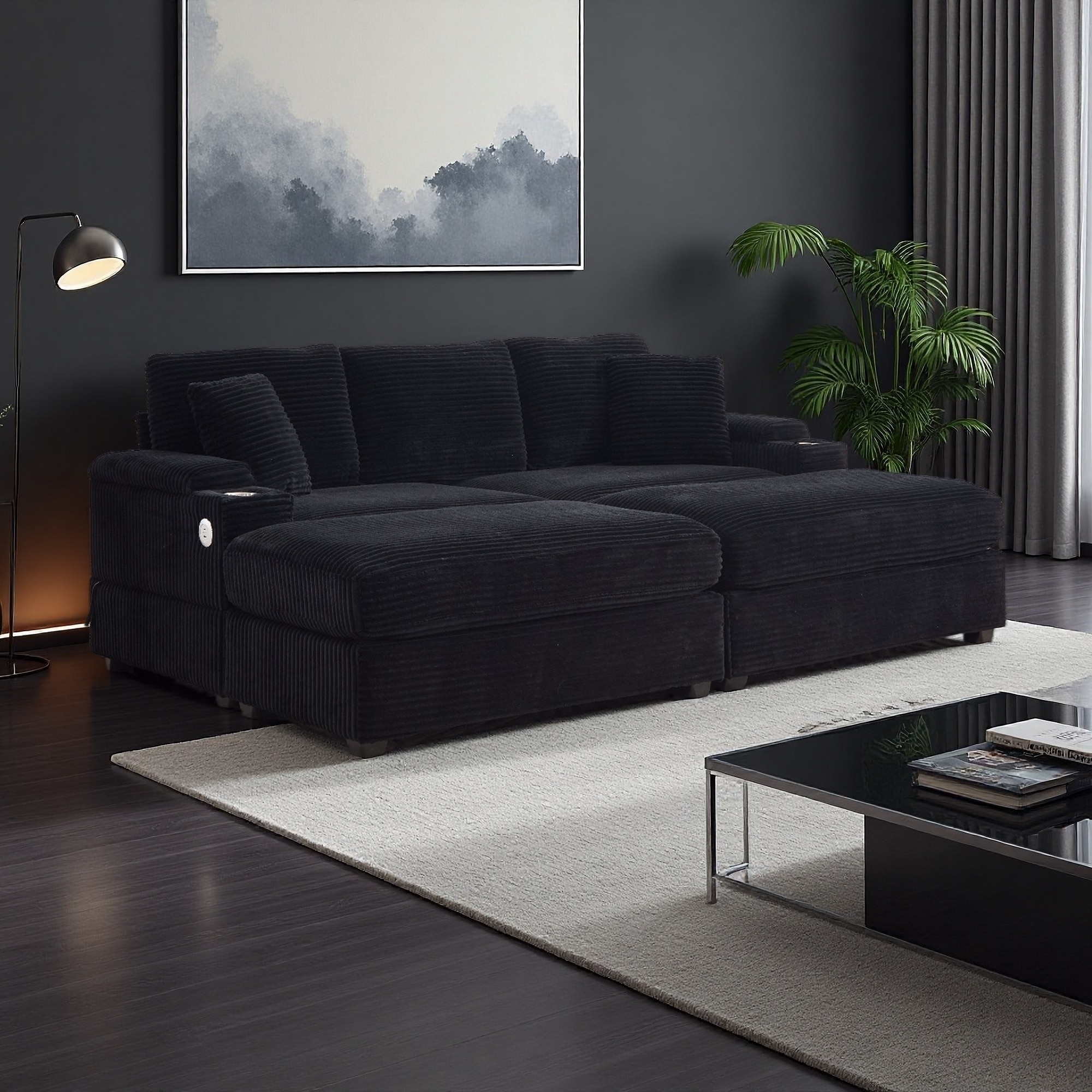 86.61" Corduroy Modular Sectional Sofa with USB Charging and Cup Holders and Armrest Storage