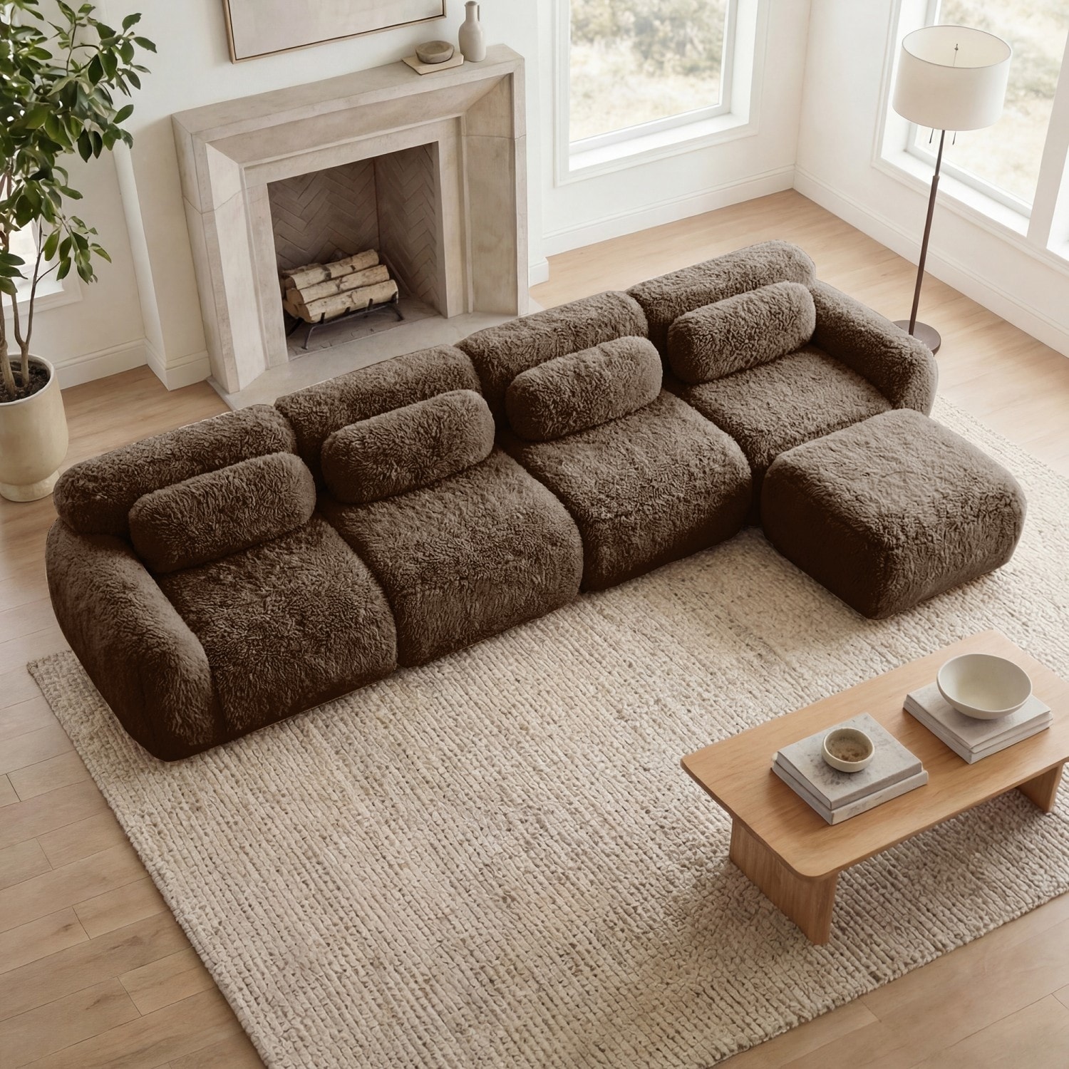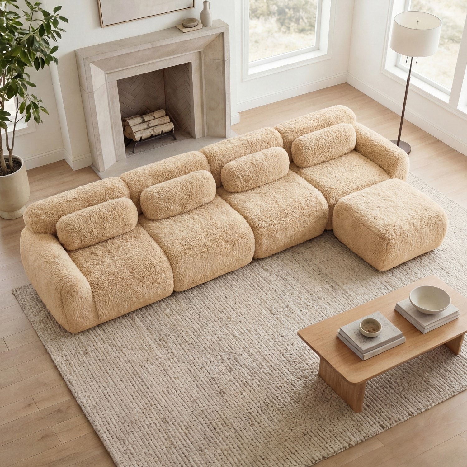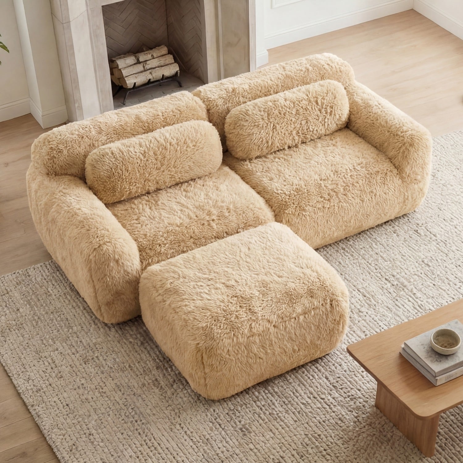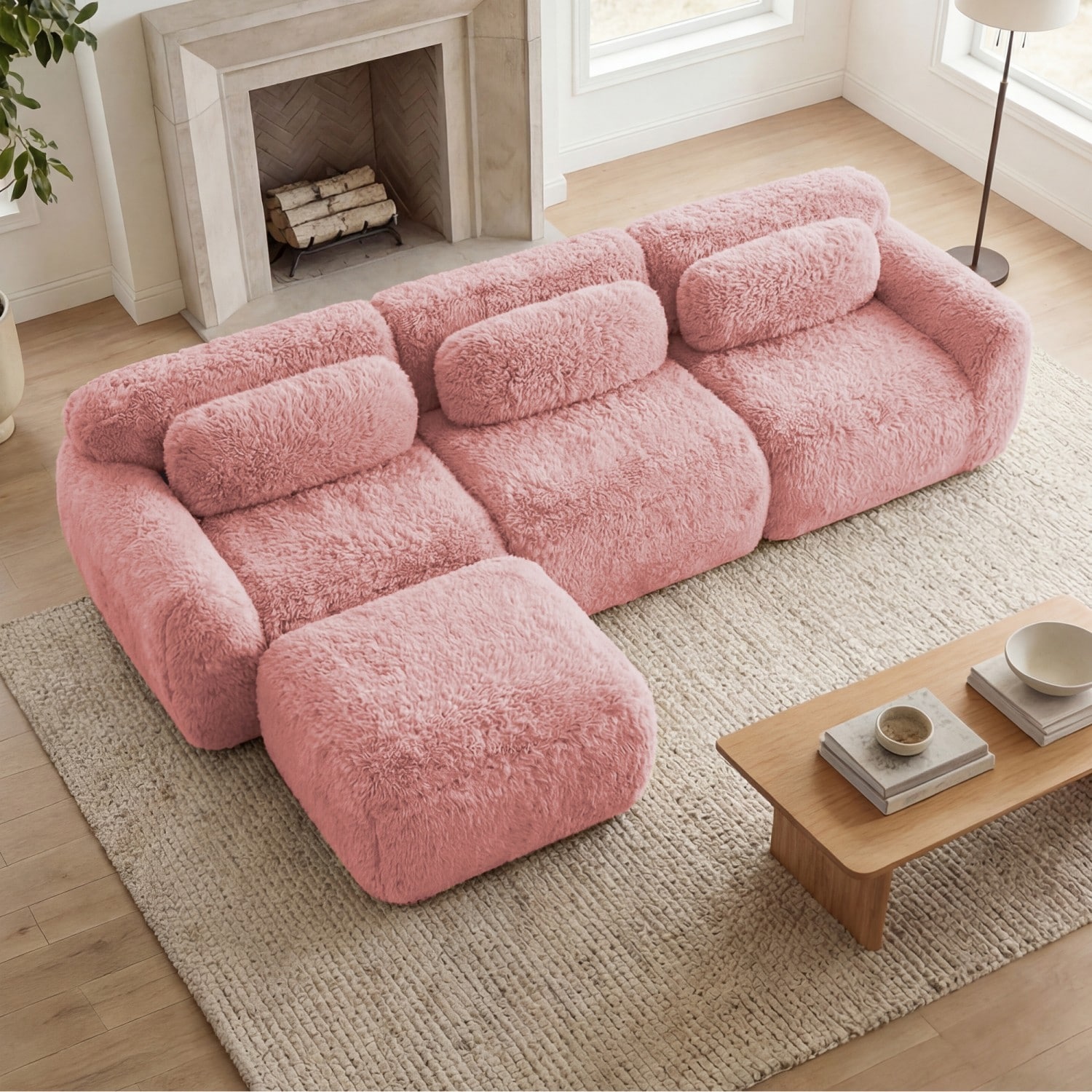 L-shaped Soft Fluffy Plush Fabric Boneless Sofa with Ottoman,No Assembly Required