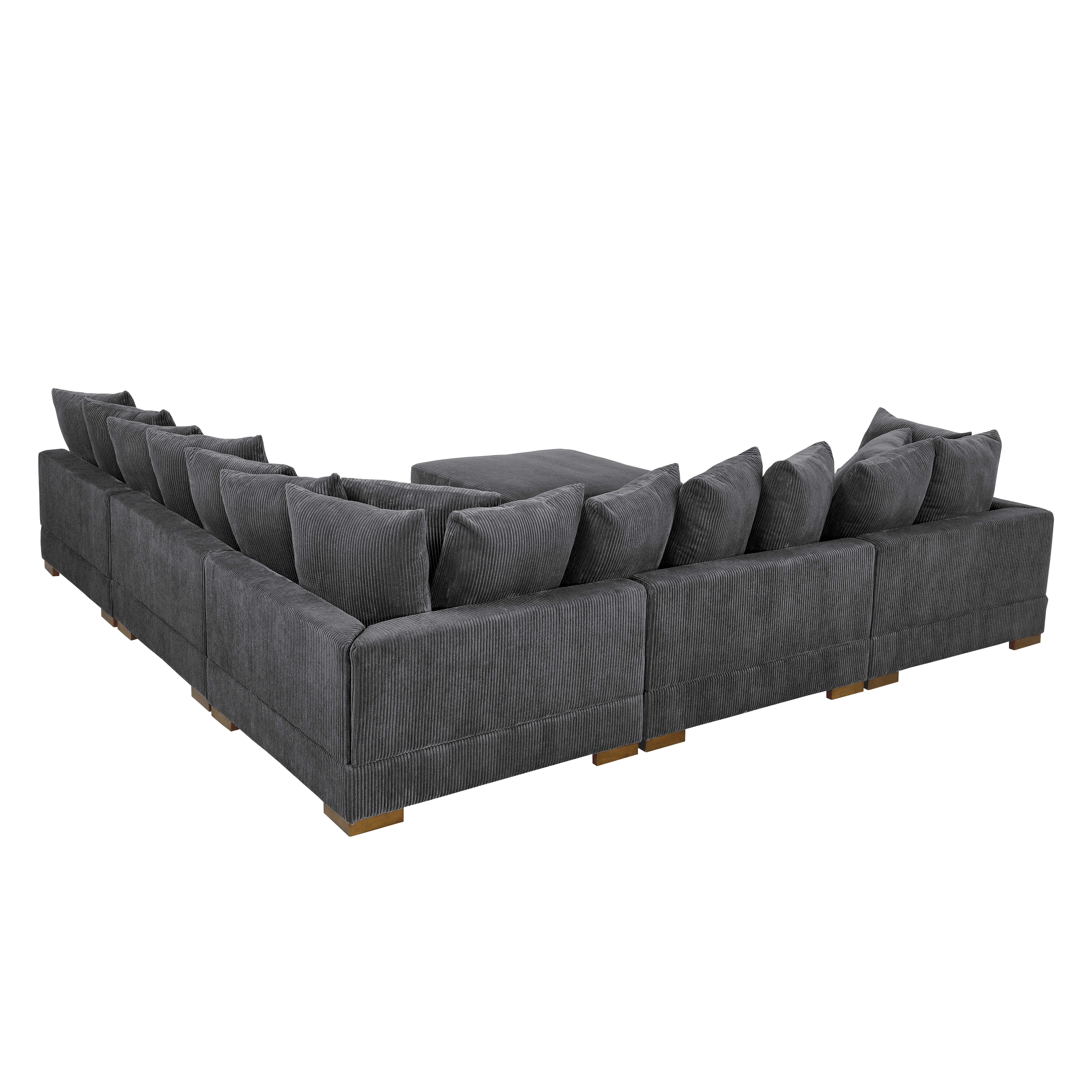 Modern U-Shaped Sectional Sofa Set Stripe Corduroy Upholstered Sofa with Light Strip and 6 Pillows