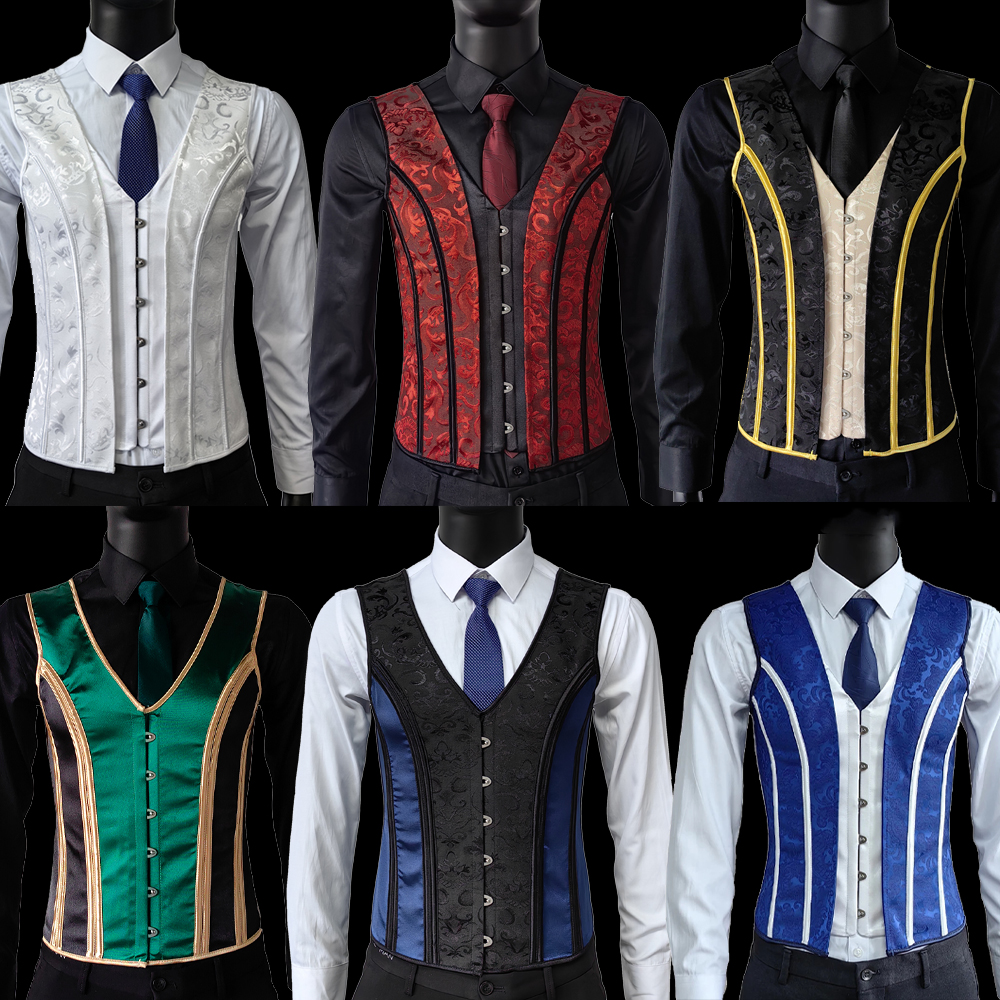 Mens Vintage Corset Waistcoat Lace Up Boned Abdomen Shaping Vest, Tummy Control Waist Girdle For Formal & Stage Wear white Gold 3xl