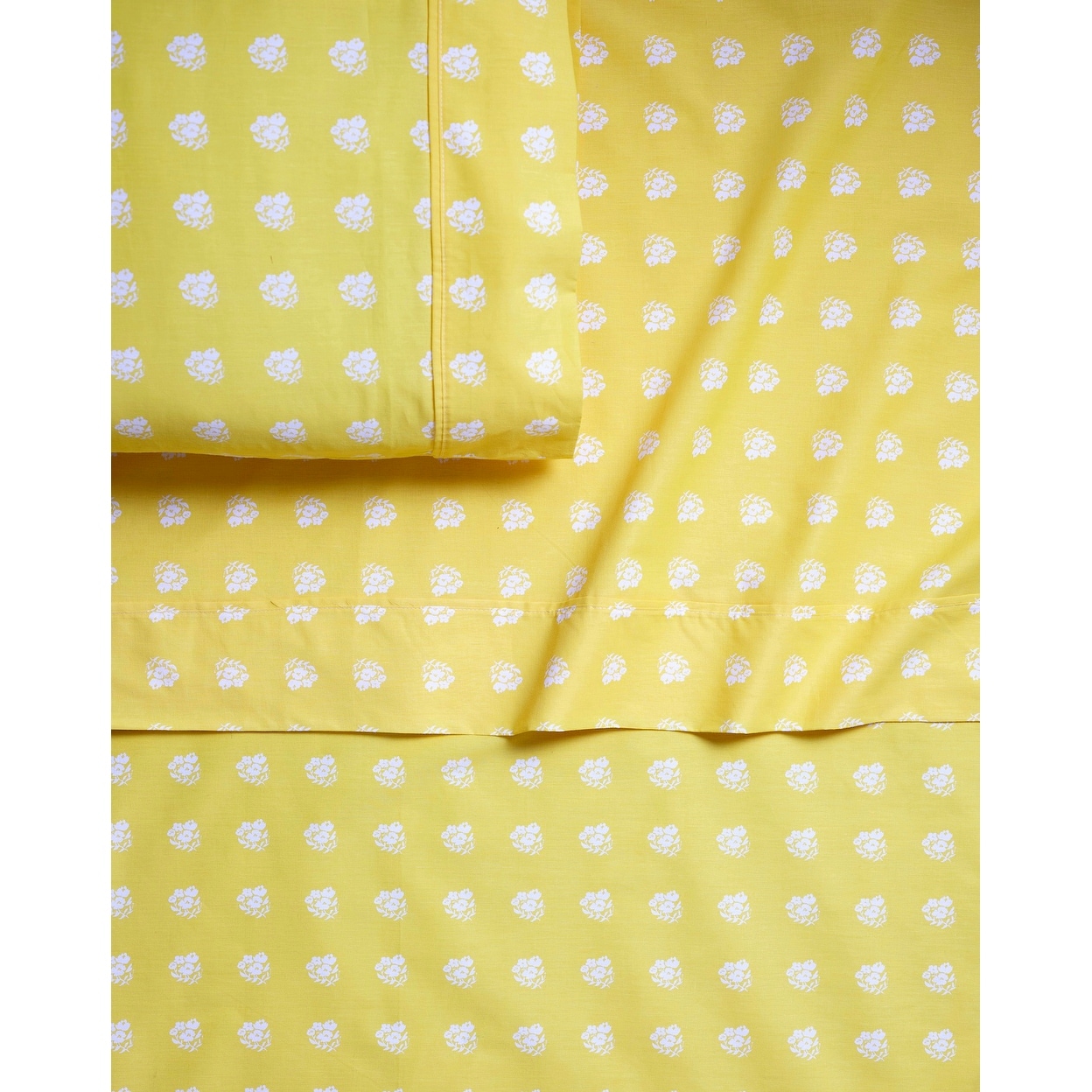 White Posies on Yellow Brushed Cotton Sheet Set