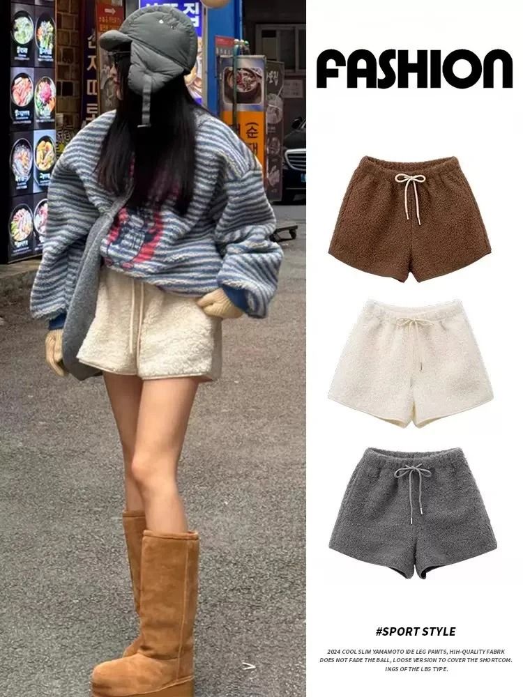 Womens Faux Lamb Fur High Waisted Winter Shorts Warm Fleece Korean Style Outerwear Hot Pants l white