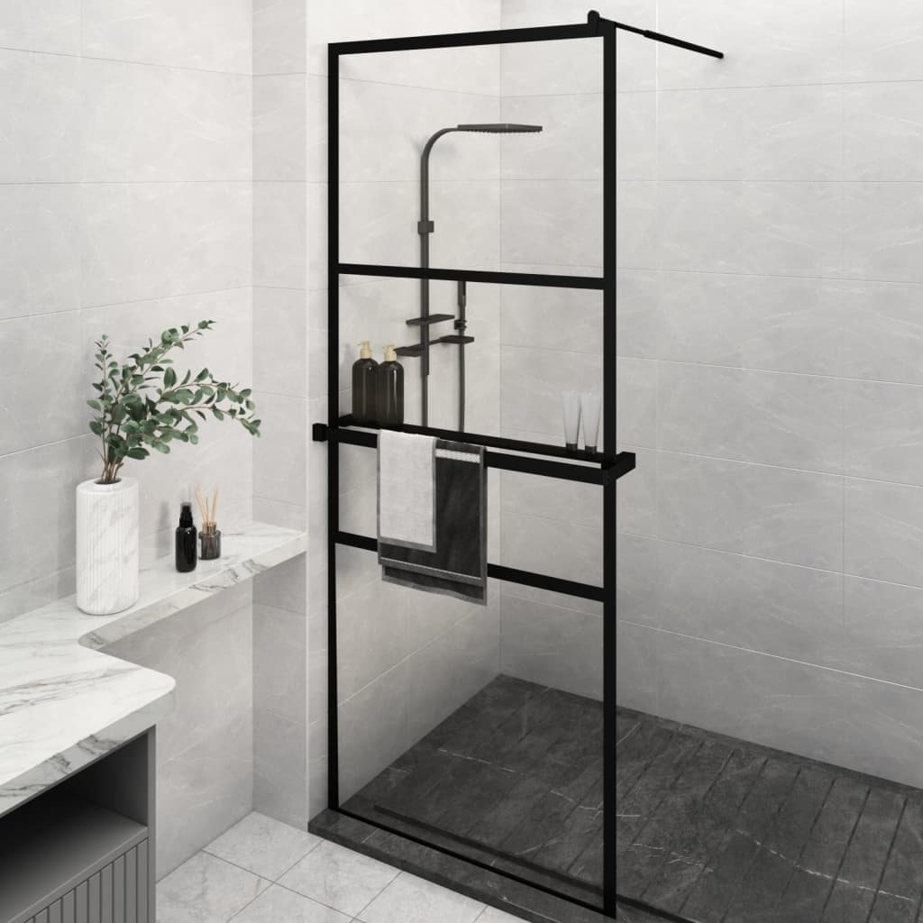 vidaXL Walk-in Shower Wall with Shelf Shower Enclosure ESG Glass and Aluminum