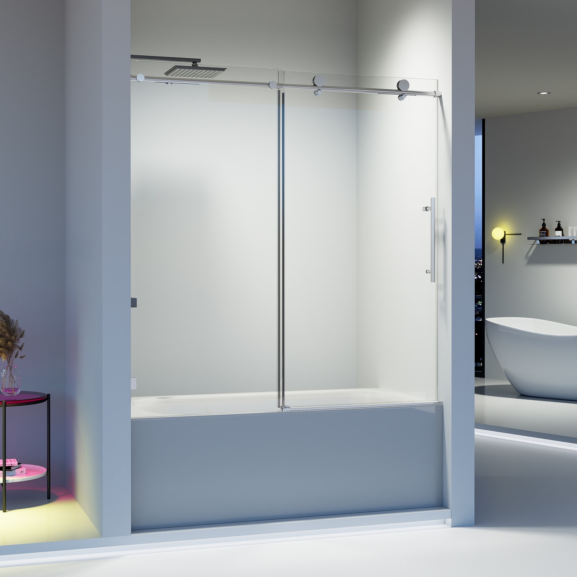56-60" W x 60" H Frameless Single Sliding Shower Door, 8mm Tempered Glass Soft-Close Bathroom Enclosure - 60x60"