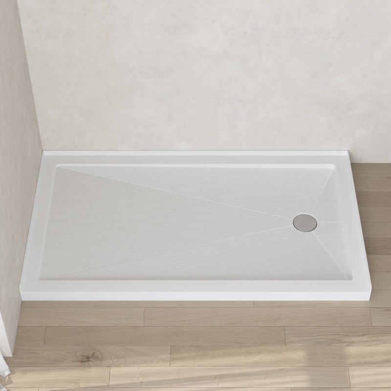 60" x 34" Shower Base in White with Single Threshold, Rectangle Acrylic Alcove Shower Pan for Bathroom,Right Drain Location