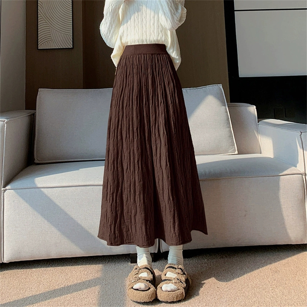 2025 New Korean Design, High Waist Skirt, Autumn Winter Female Skirt, Warm Thick Knitted Wool Long Skirt black one Size
