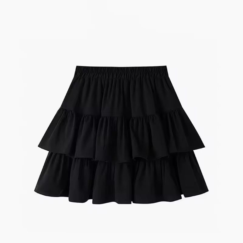 Pleated Ruffle A Line Skirt White Tiered Summer Mini Skirt For Women xl black