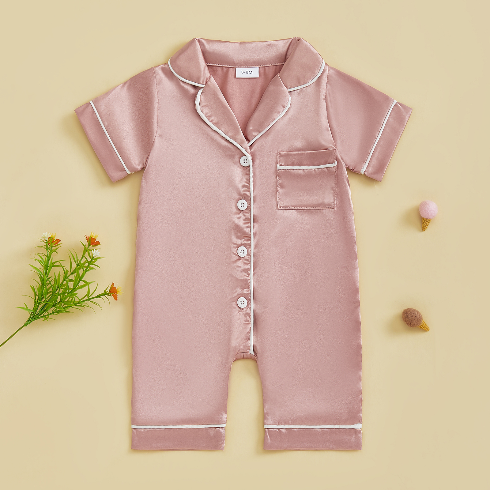 Adorable Infant Princess Bow Satin Pajama Set, Short Sleeve Button Up, Jumpsuit For Sweet Toddler Bedtime pink 6 12 Months