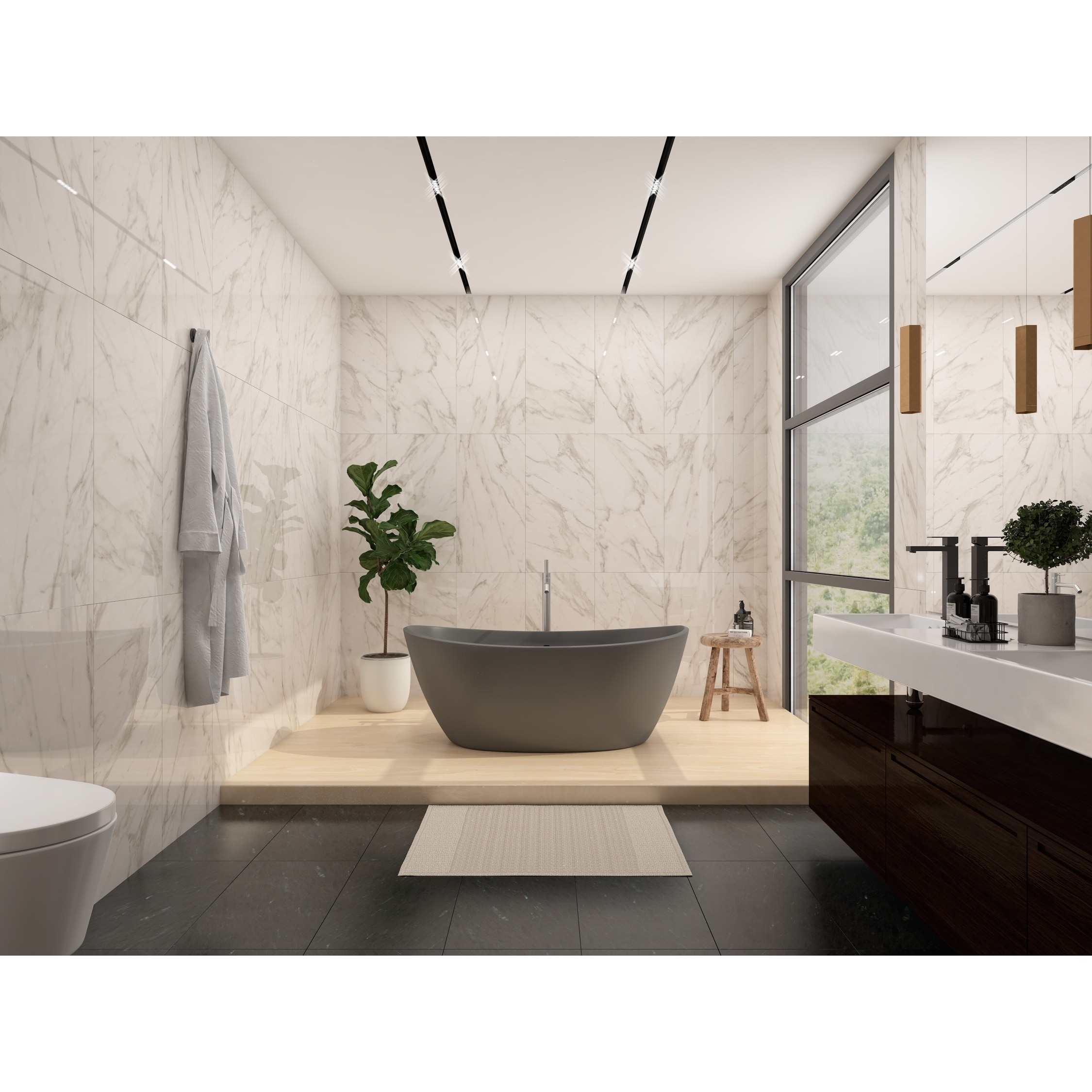 Manhattan 65" Solid Surface Freestanding Soaking Bathtub, Grey, White, Black