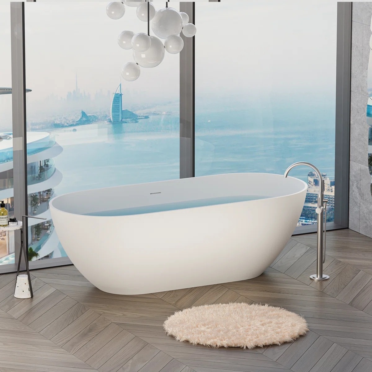 ABRUZZO 67" Freestanding Soaking Solid Surface Bathtub Stone Resin with Overflow and Pop-up Drain