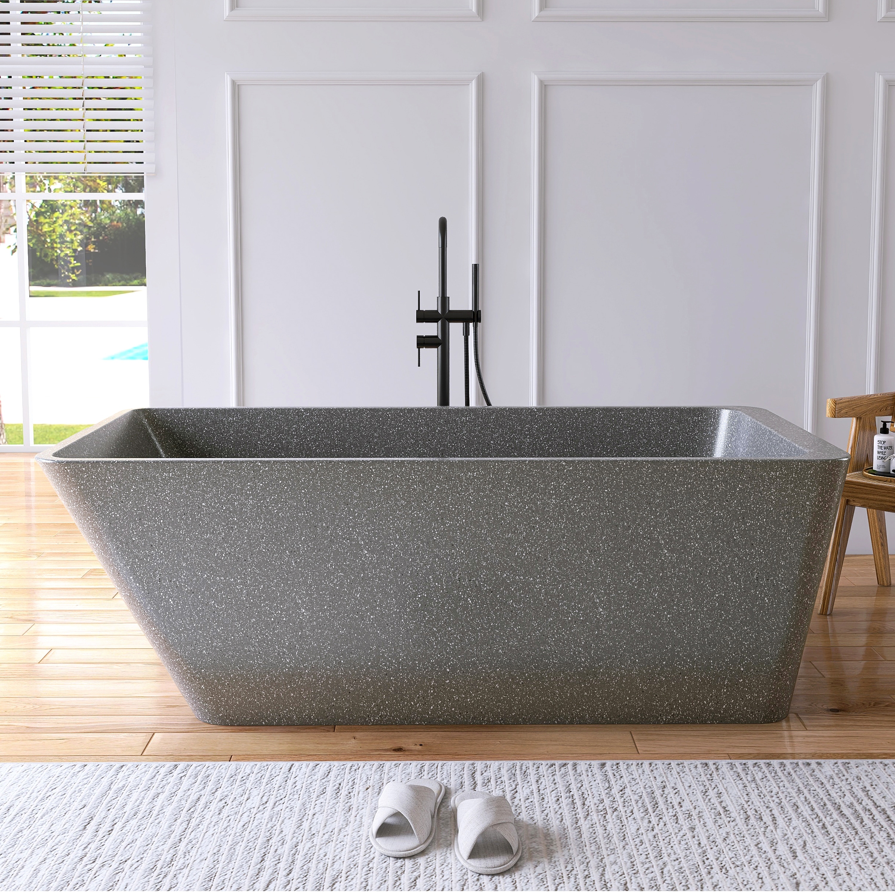 MEDUNJESS 64'' Freestanding Bathtub Solid Surface Soaking Tub