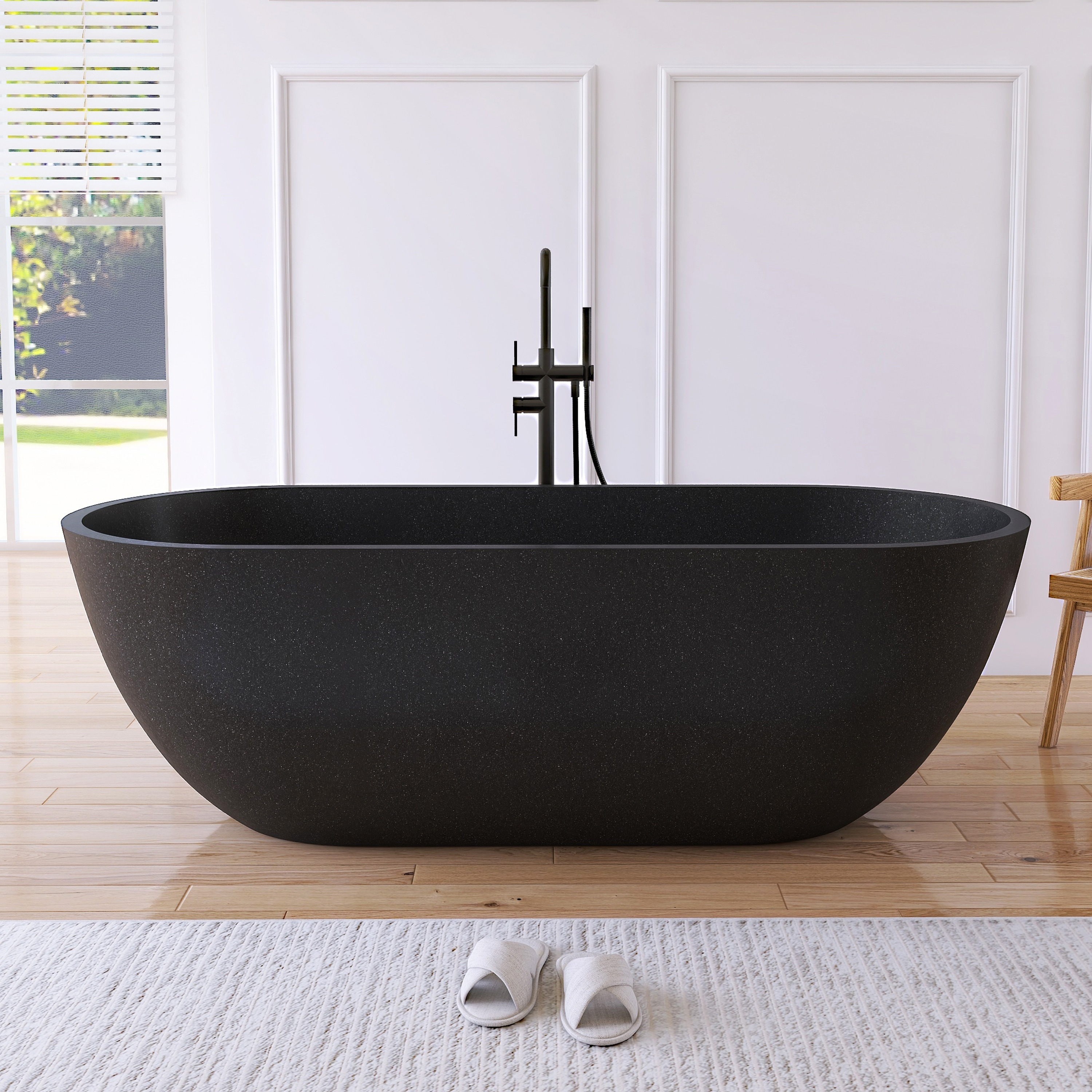 65" Freestanding Bathtub, Luxury Handcrafted Stone Resin Freestanding Soaking Bathtub with Overflow and Pop-up Drain