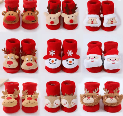 CozySnow Christmas Baby Socks Warm Knitted Snowman And Deer Mid Socks a 0 To 1 Year