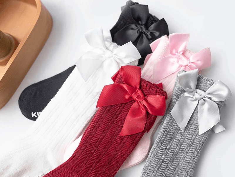 Royal Bow Knee High Fishnet Socks For Girls pink White Gray 1 To 3 Year