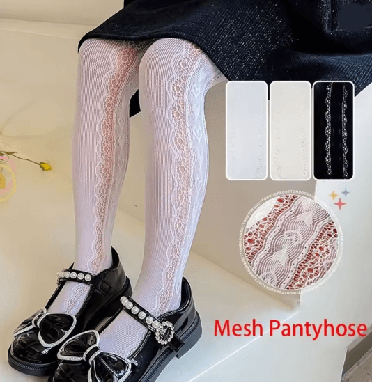 Princess Lace Mesh Pantyhose For Girls Soft Stretch Kids Fashion Tights white 9 To 12 Year
