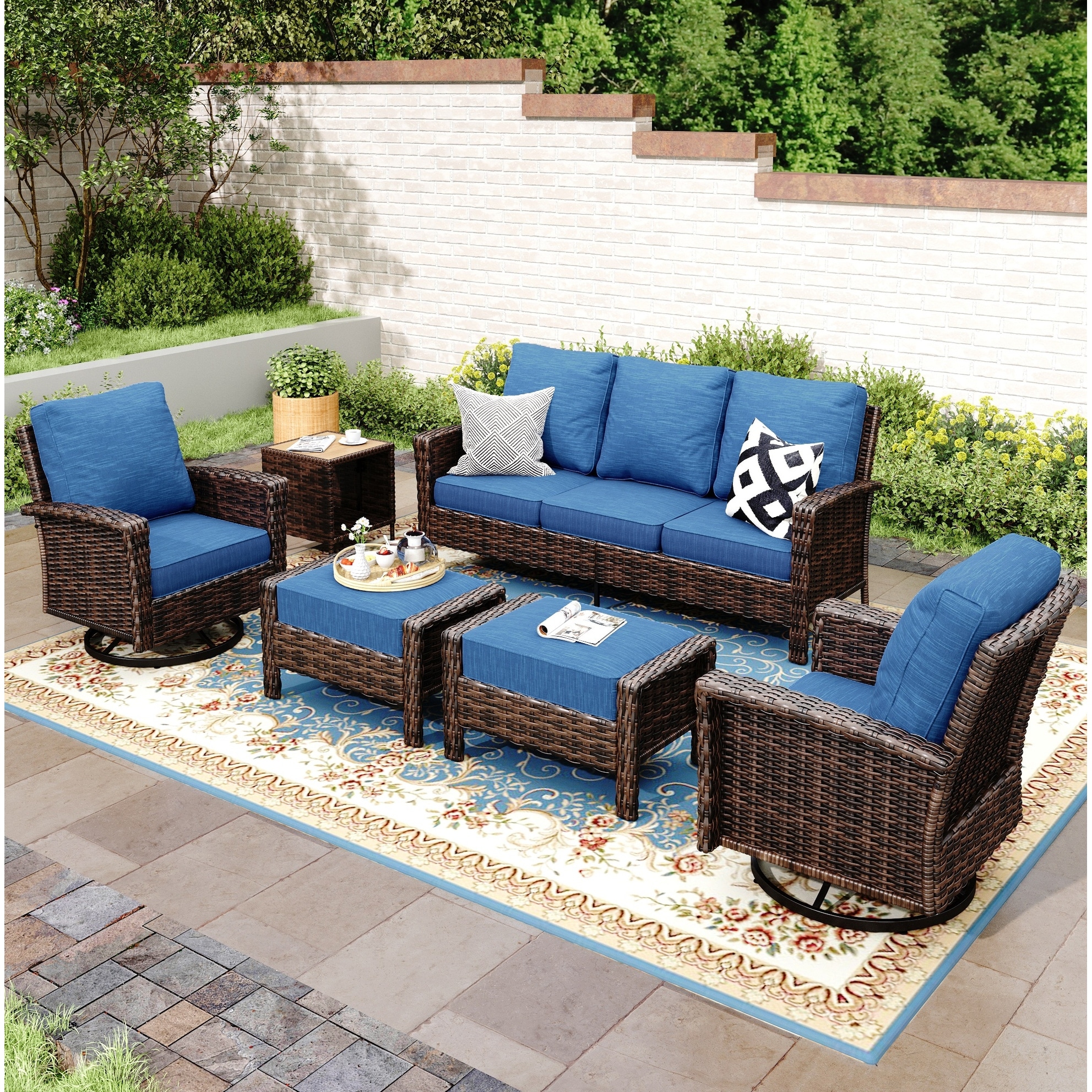 MAISON ARTS 7-Piece Extra-Large Patio Wicker Sofa Conversation Set with Table, Oversize Seat with 5.5'' Thick Padded Cushion