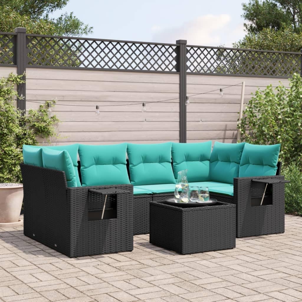 vidaXL 7 Piece Patio Sofa Set with Cushions Black Poly Rattan - 21.7 x 24.4 x 27.2