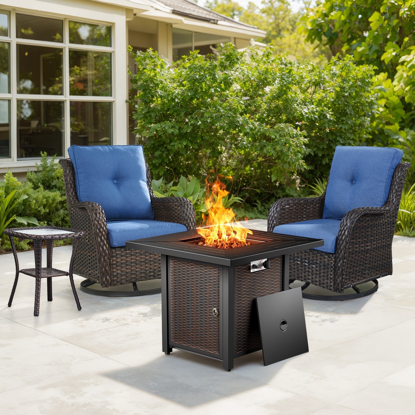 Gymojoy 4-Piece Outdoor Fire Pit Set with 2 Swivel Chairs & Side Table for Patio, Deck, Garden