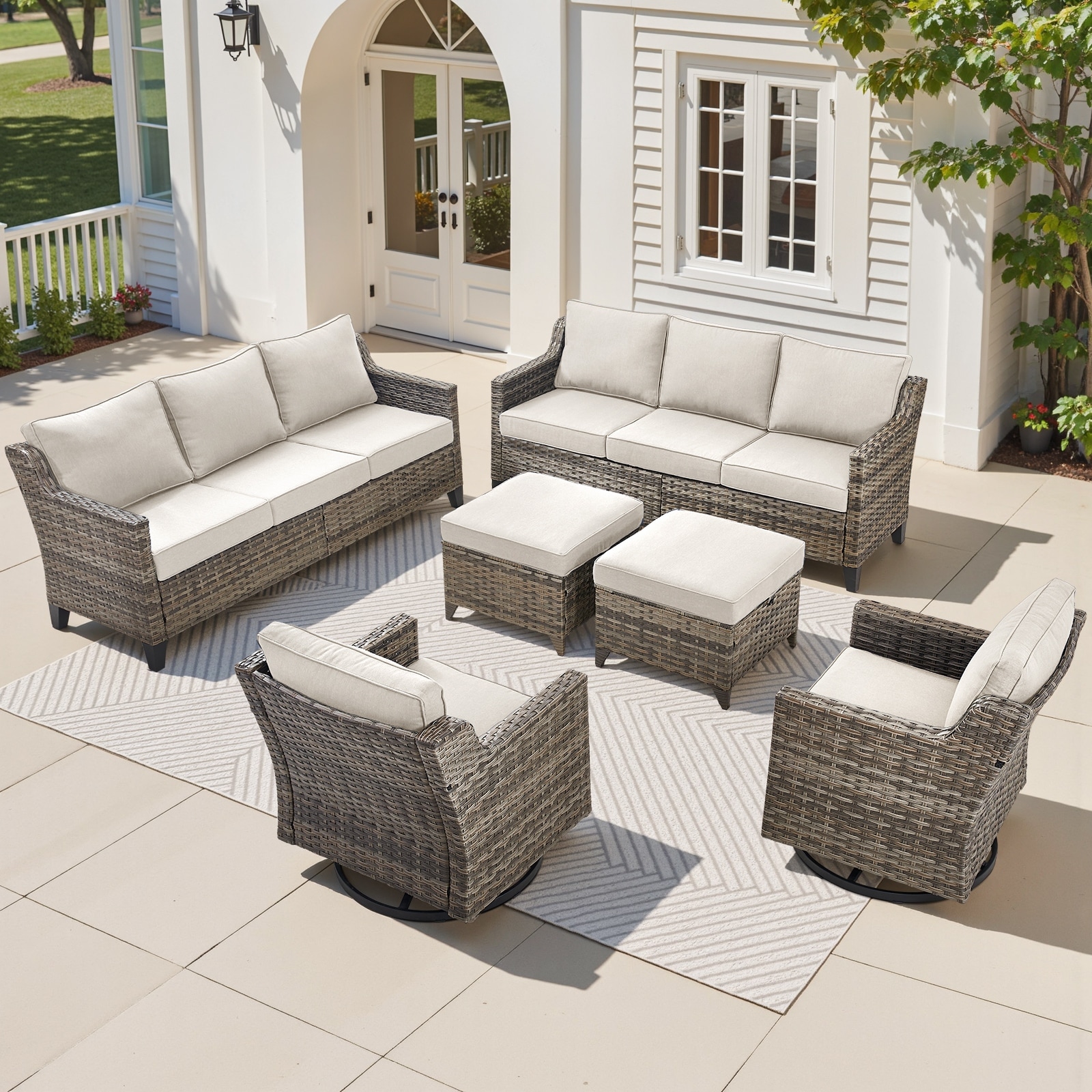Wicker Outdoor Patio Conversation Seating Sofa Sets with Swivel Chairs