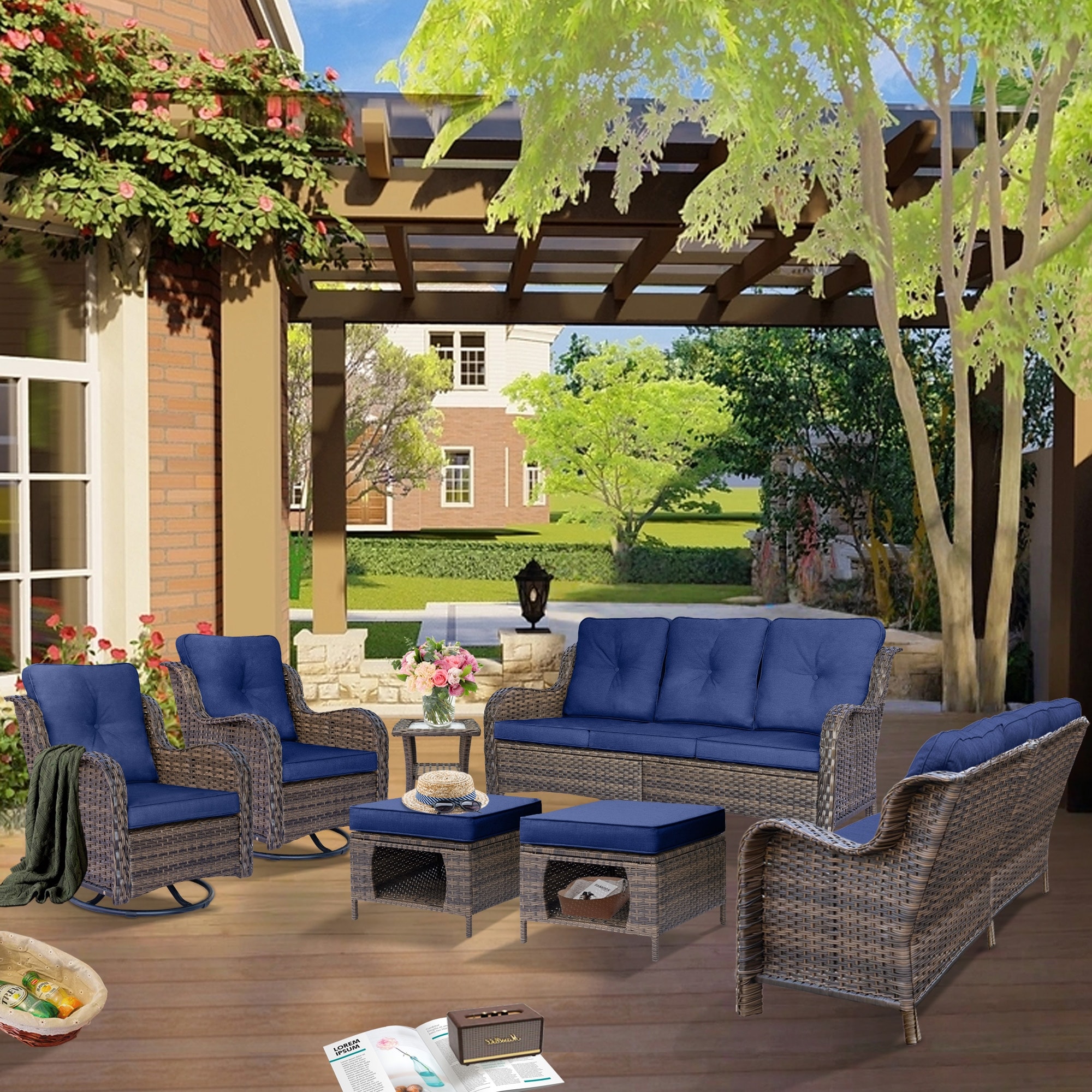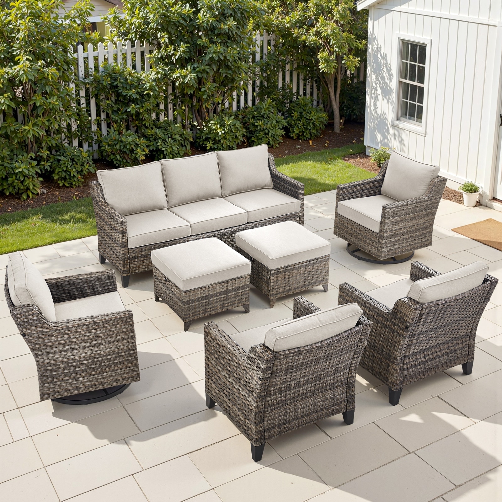 Pocassy Patio Sofa Swivel Chair Ottoman Table Furniture Set.